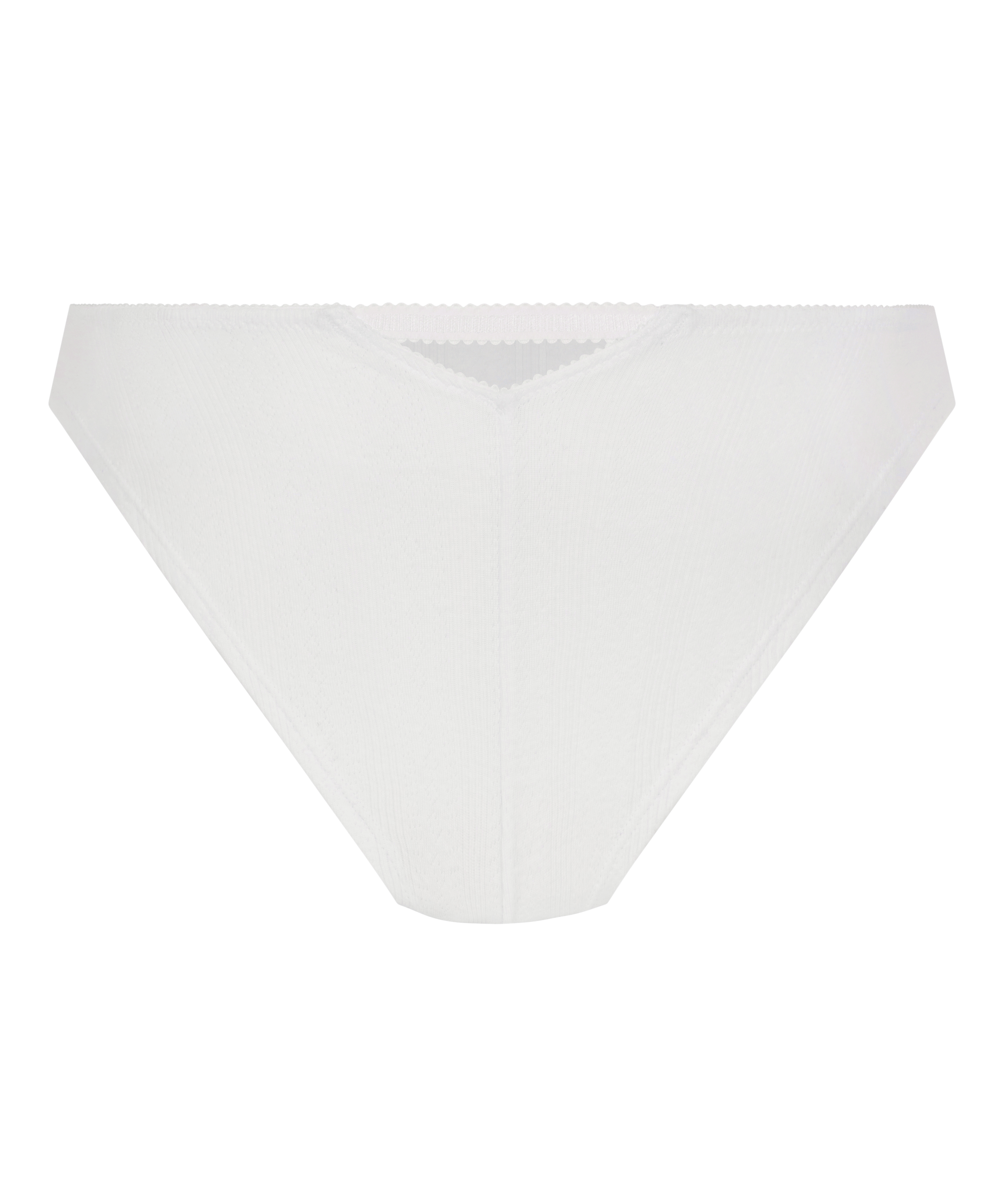 Sweet and romantic, this brazilian brings charm to your lingerie collection. Made from soft pointelle fabric, it offers a light and comfortable fit with a subtle textured finish. The rose detail in the front adds a sweet touch, combine with a matching bra for a complete look.