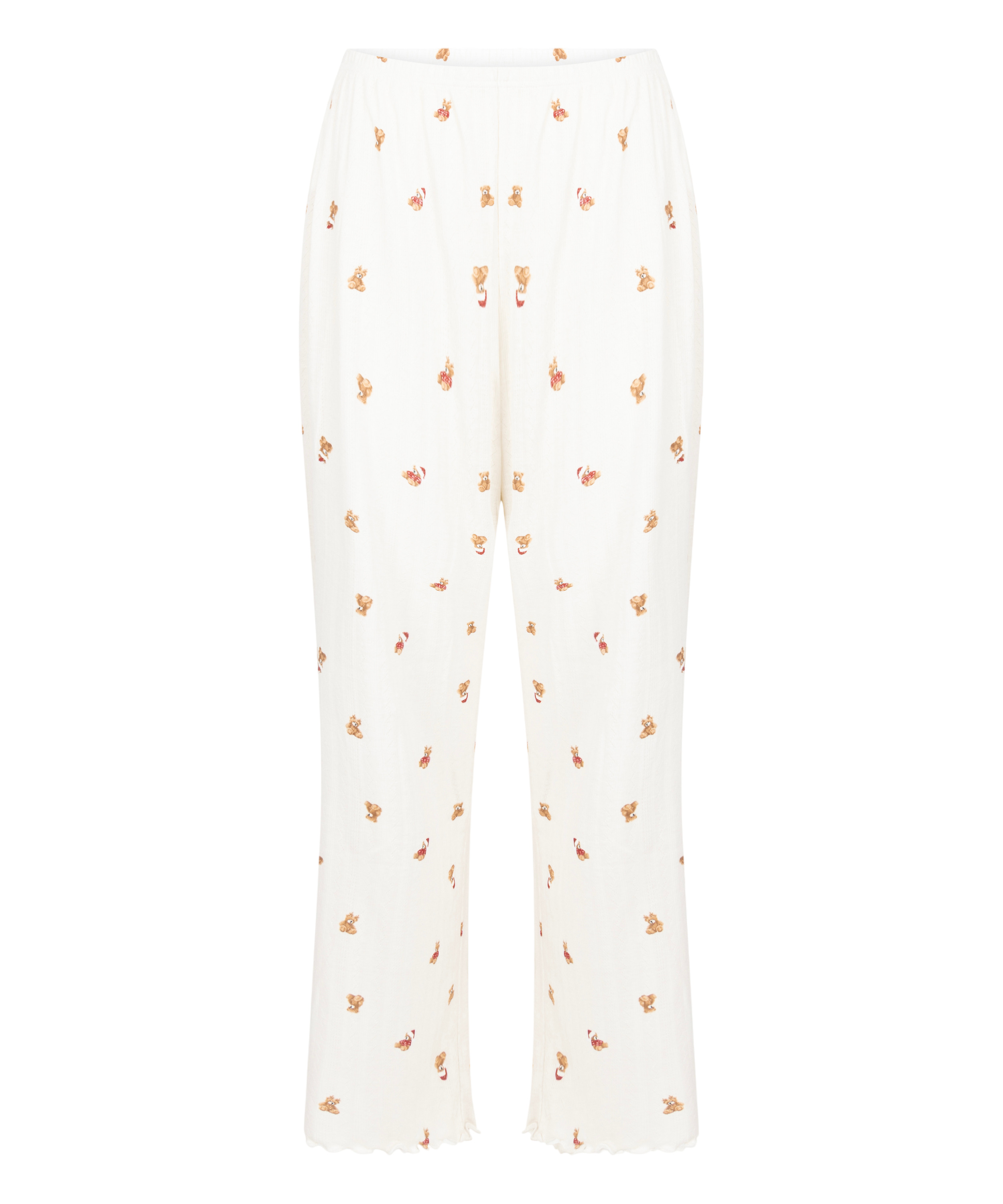 Feel the ultimate comfort in this lovely long pyjama pants! Perfect for a cozy night in. It is made of a very soft fabric and has cute ruffled edges. Combine it with the matching pyjama top to make the perfect comfi set!