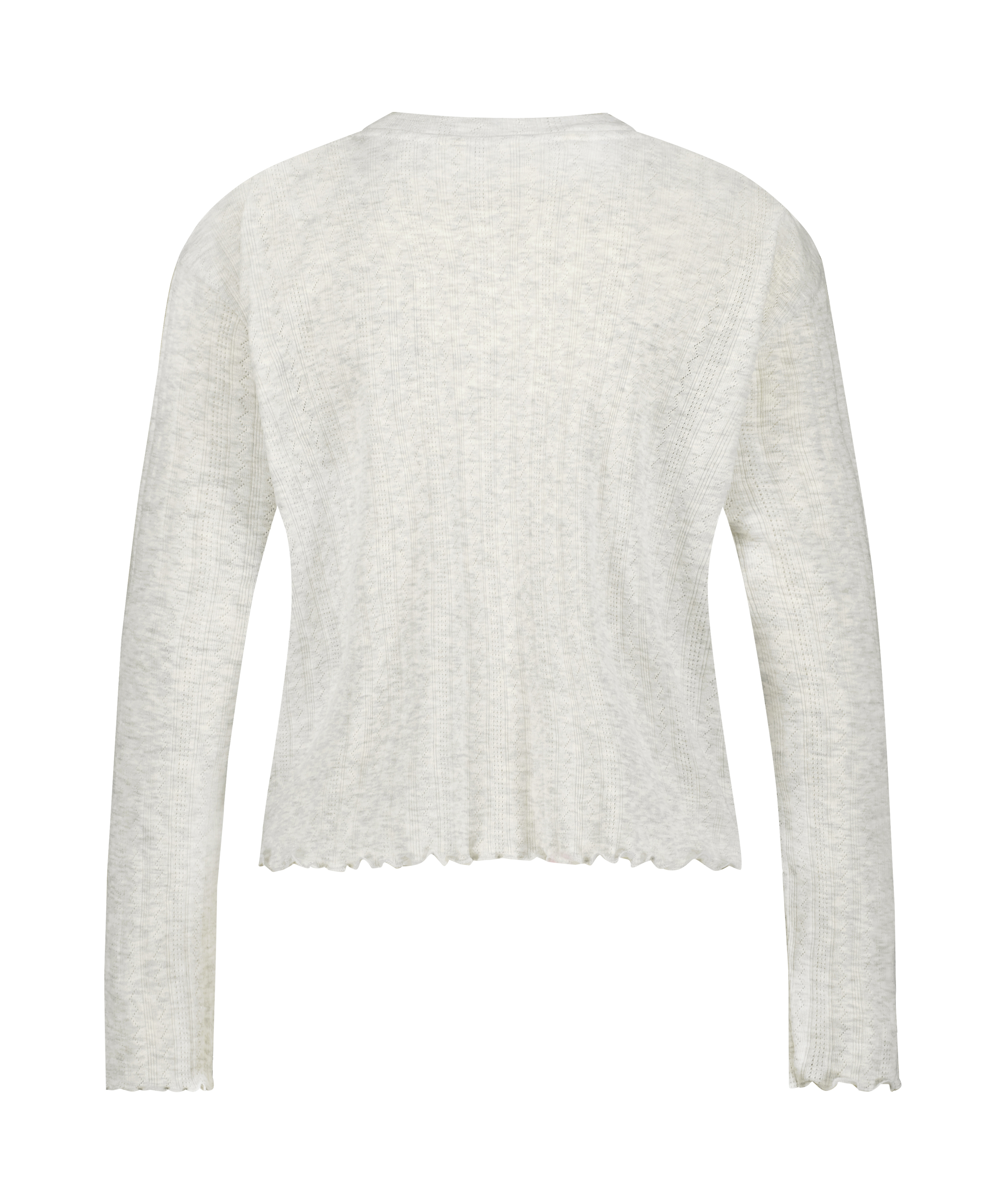 Feel comfortable in this lovely pyjama top with long sleeves and a round neck. It is made of a very soft fabric and has cute ruffled edges. Combine it with the matching pants to make the perfect comfi set!