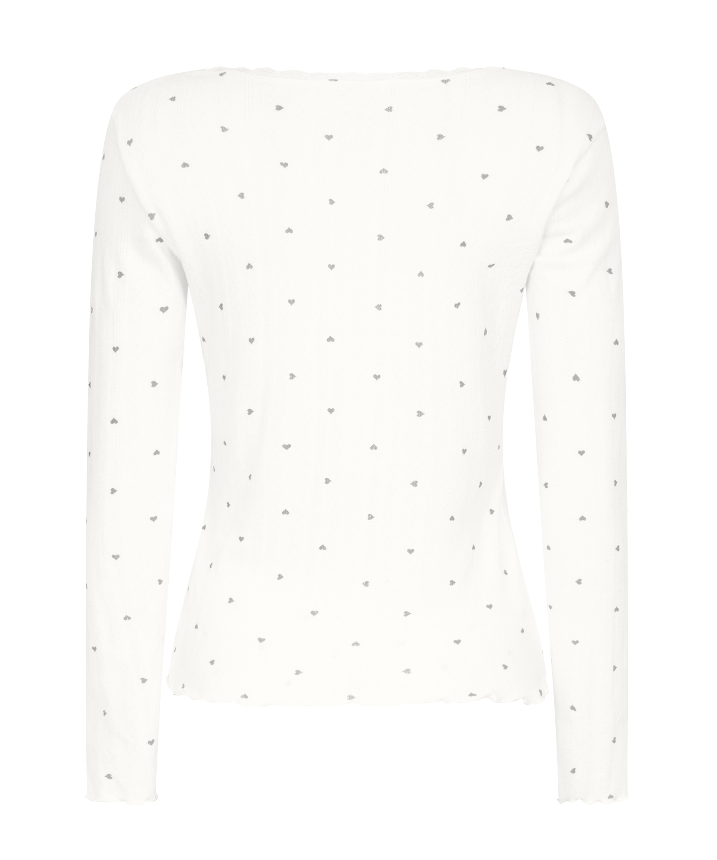 Feel comfortable in this lovely pyjama top with long sleeves and a round neck. It is made of a very soft fabric and has cute ruffled edges. Combine it with the matching pants to make the perfect comfi set!