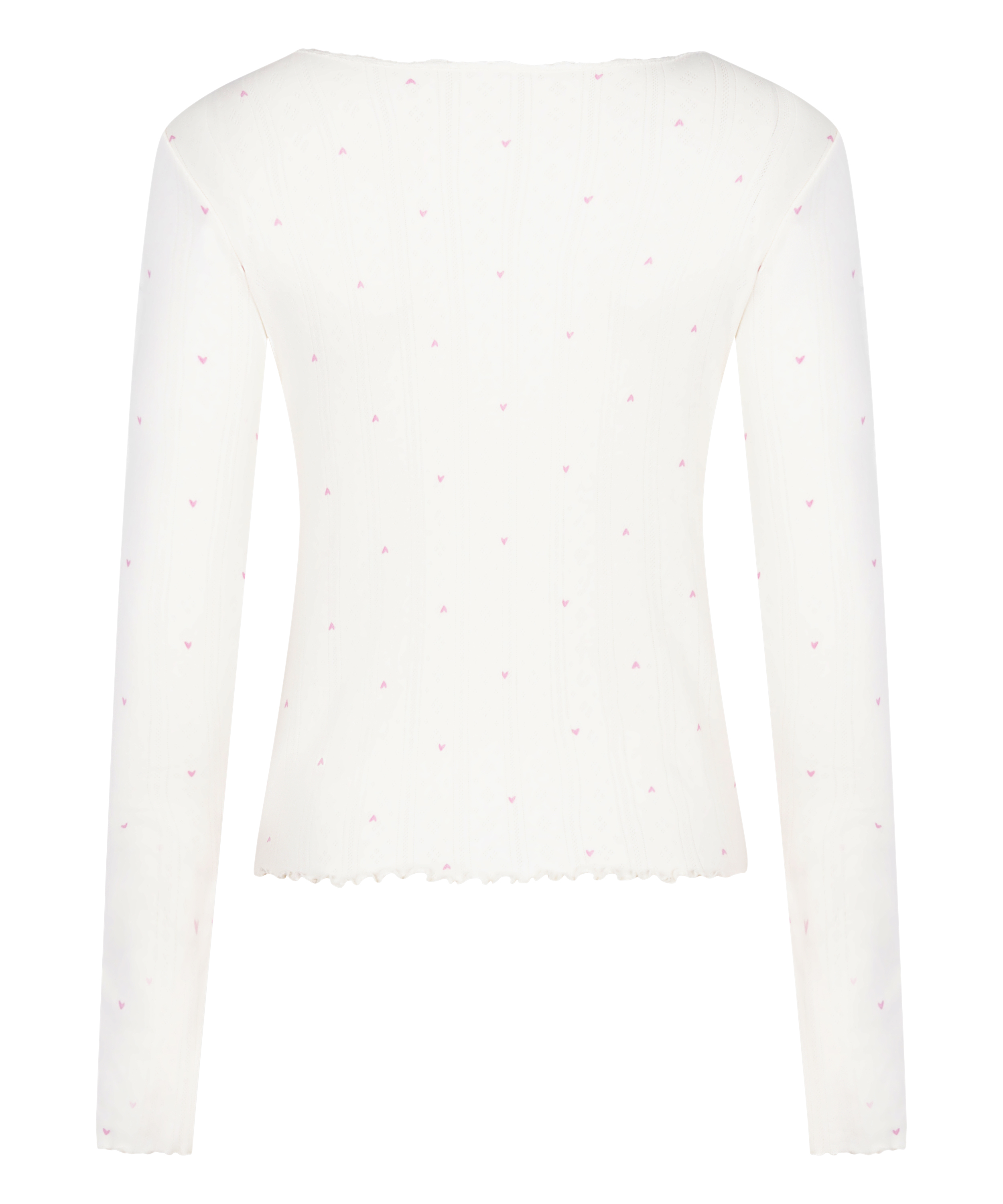 Need a top that’s as soft as it is sweet? This long sleeve pointelle pyjama top is made from breathable cotton and sprinkled with tiny heart details for a playful finish. The delicate texture and relaxed fit make it perfect for cozy nights or chill mornings. Match it with the pointelle shorts or pants for a dreamy set!