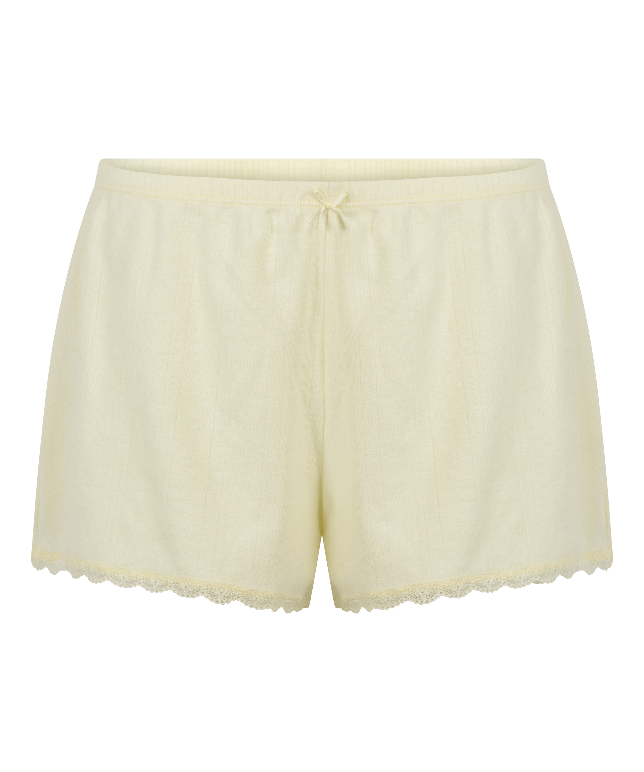 Stay comfy and stylish with our shorts. Made from soft pointelle fabric, these short feature a textured pattern that adds a touch to your loungewear. Lacec details elevate the look, while the elasticated waistband ensures a secure and comfortable fit.
