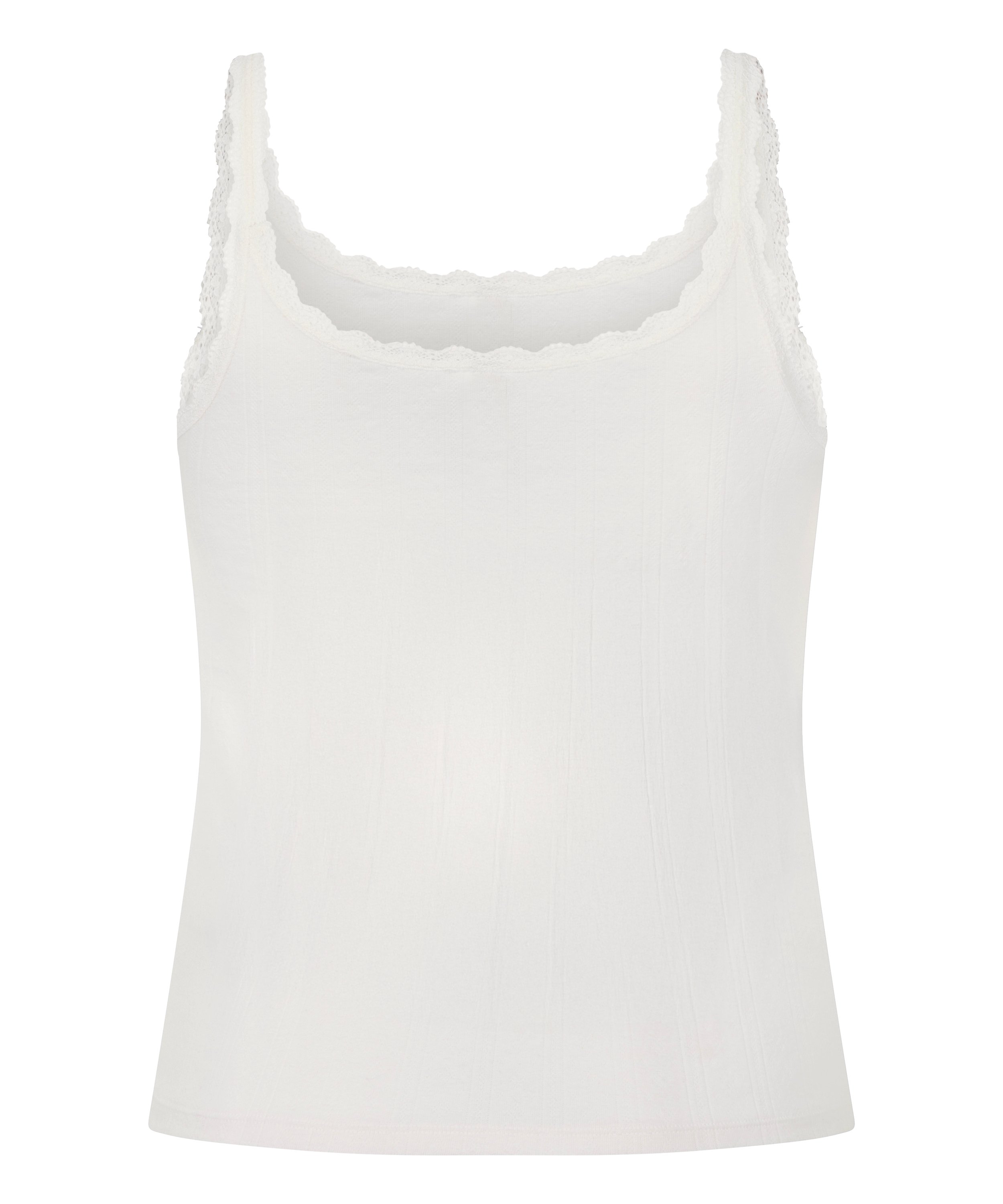 Embrace effortless charm with our Singlet, a perfect mix of femininity and comfort.. Made from soft pointelle fabric, this singlet features a delicate textured pattern that adds subtle elegance. The lace details along the neckline bring a romantic touch,