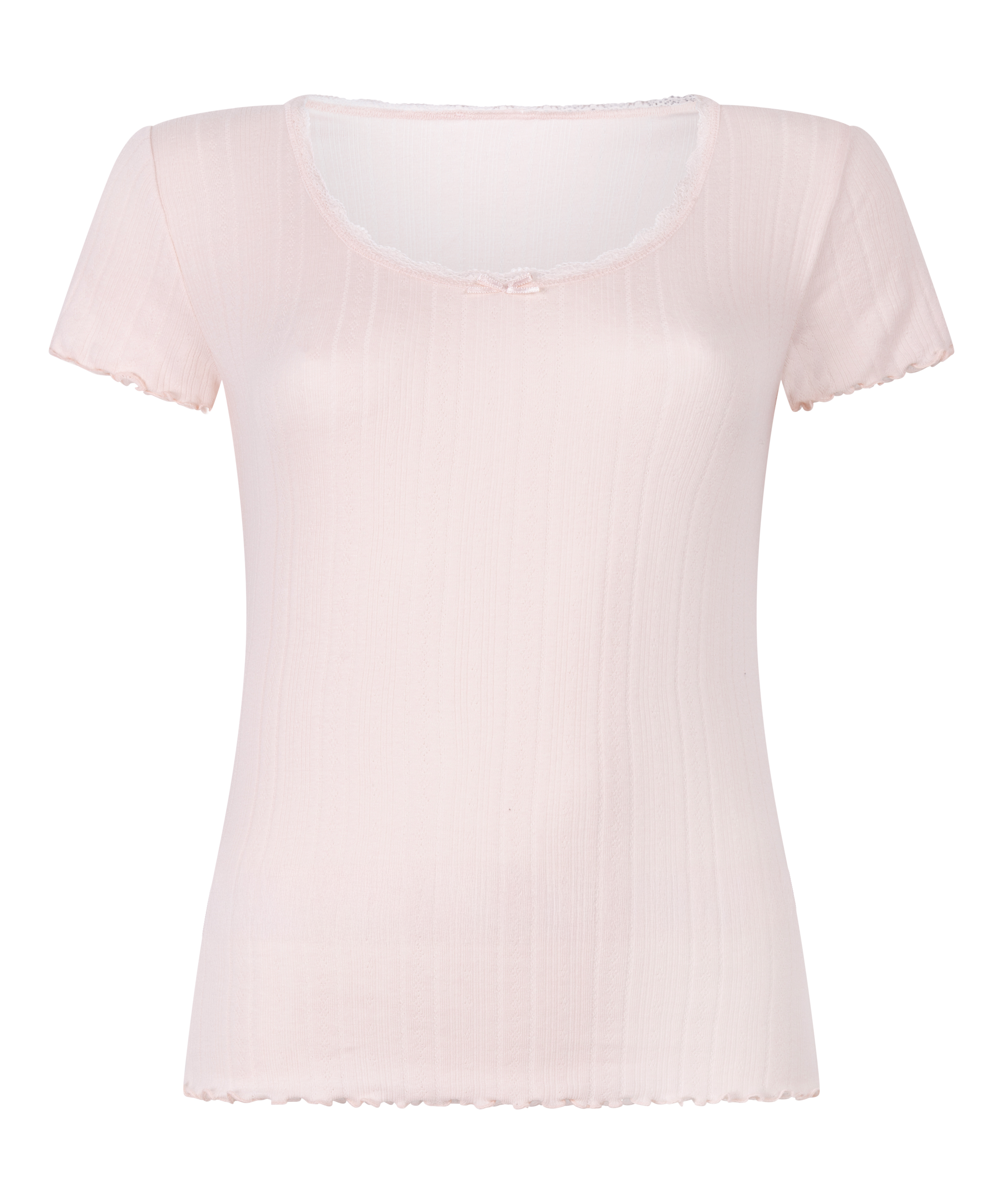 Add a touch of romance to your sleepwear! The soft pointelle fabric and short sleeves keep things light and comfy, while lace trim, a dainty bow, and gentle ruffles bring playful charm to every detail.