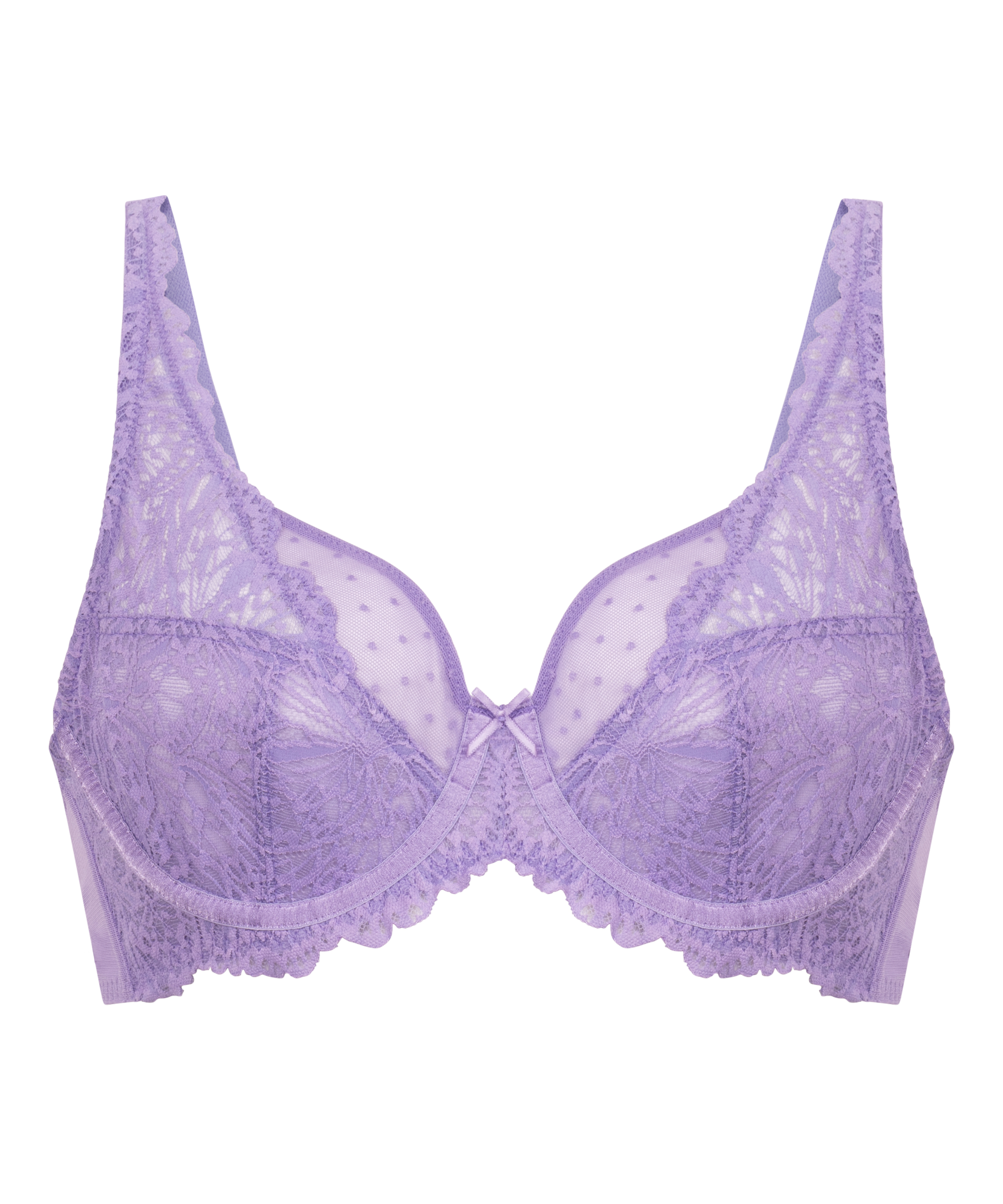 Our Posie bra is designed to celebrate your natural shape with elegance. Featuring non-padded and underwired cups, ths bra offers gentle lift and a beautifully natural silhouette. The combination of lace and dotted mesh creates a romantic, feminine look. Combine with the matching bottom for a complete look.