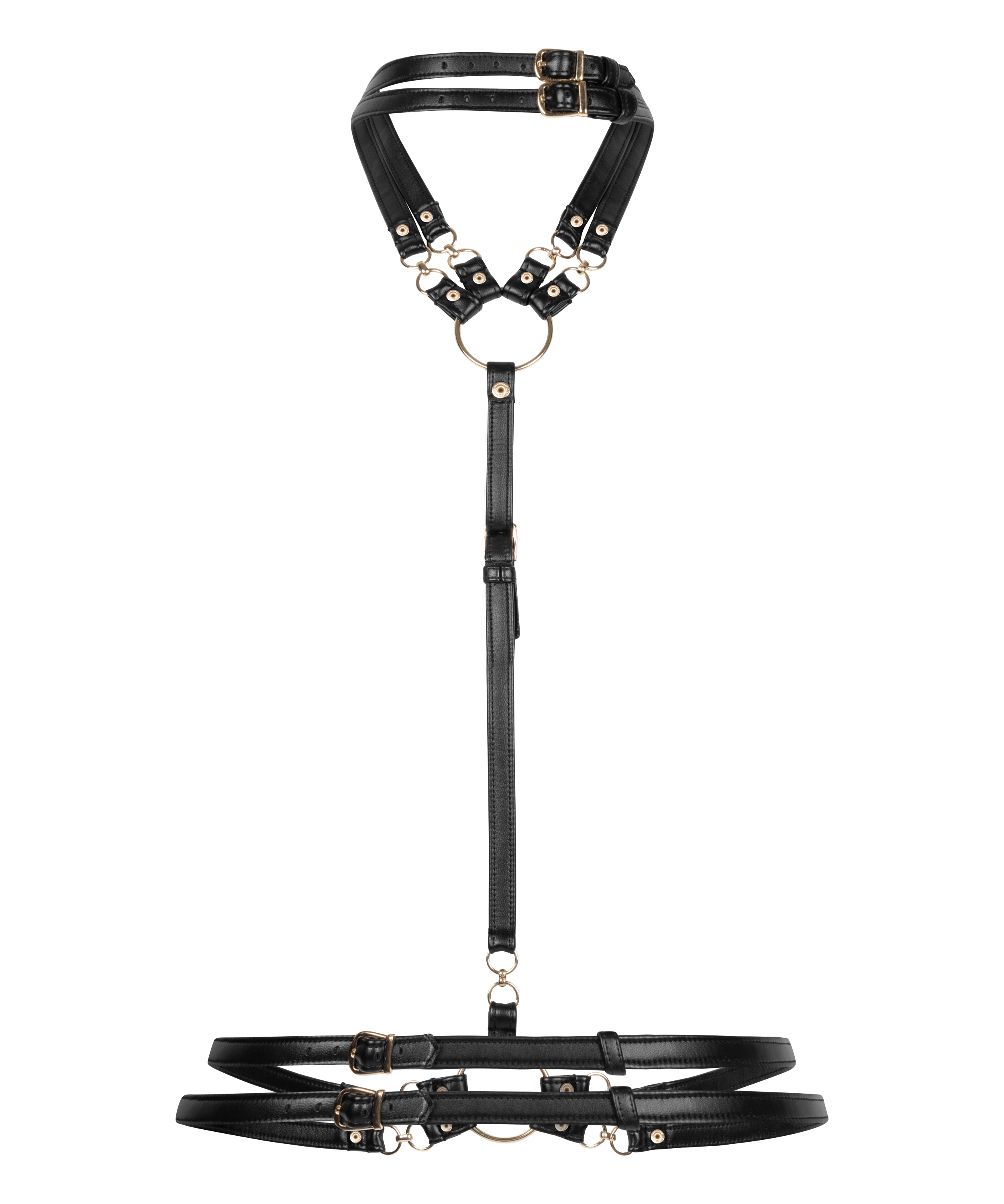 Spice things up with this smoking faux leather harness. With lots of hardware and adjustable buckles to give the perfect fit.