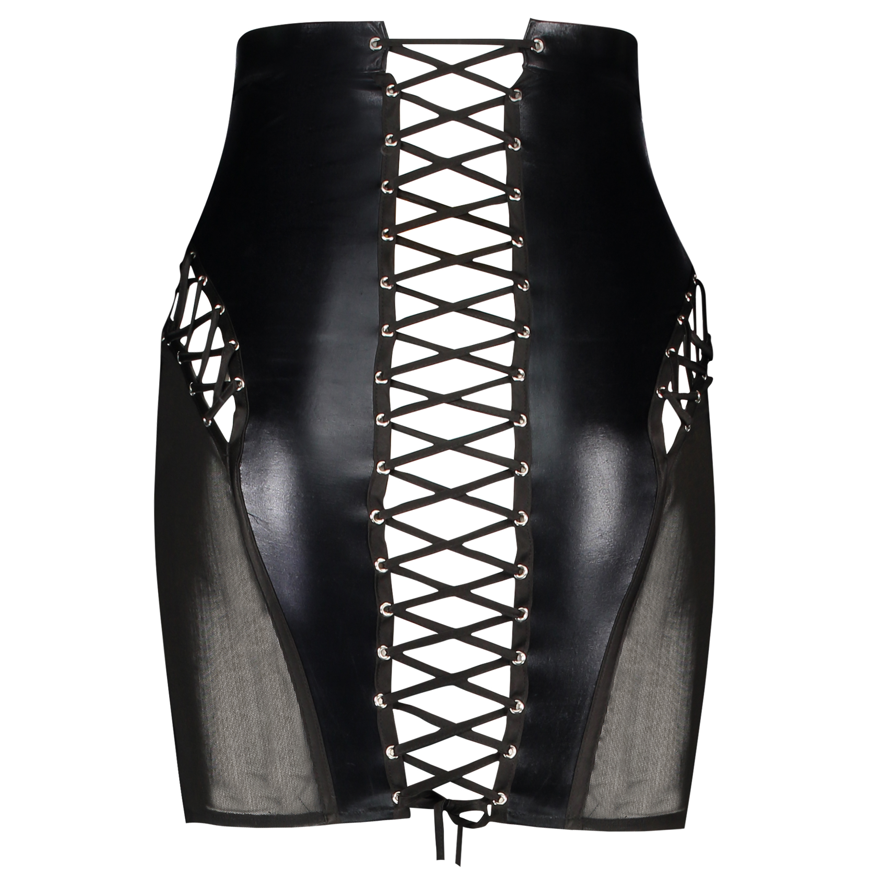This super sexy skirt is finished with strappy straps and mesh. The fake leather looks makes it look even more sexy. From our sexy Private collection.