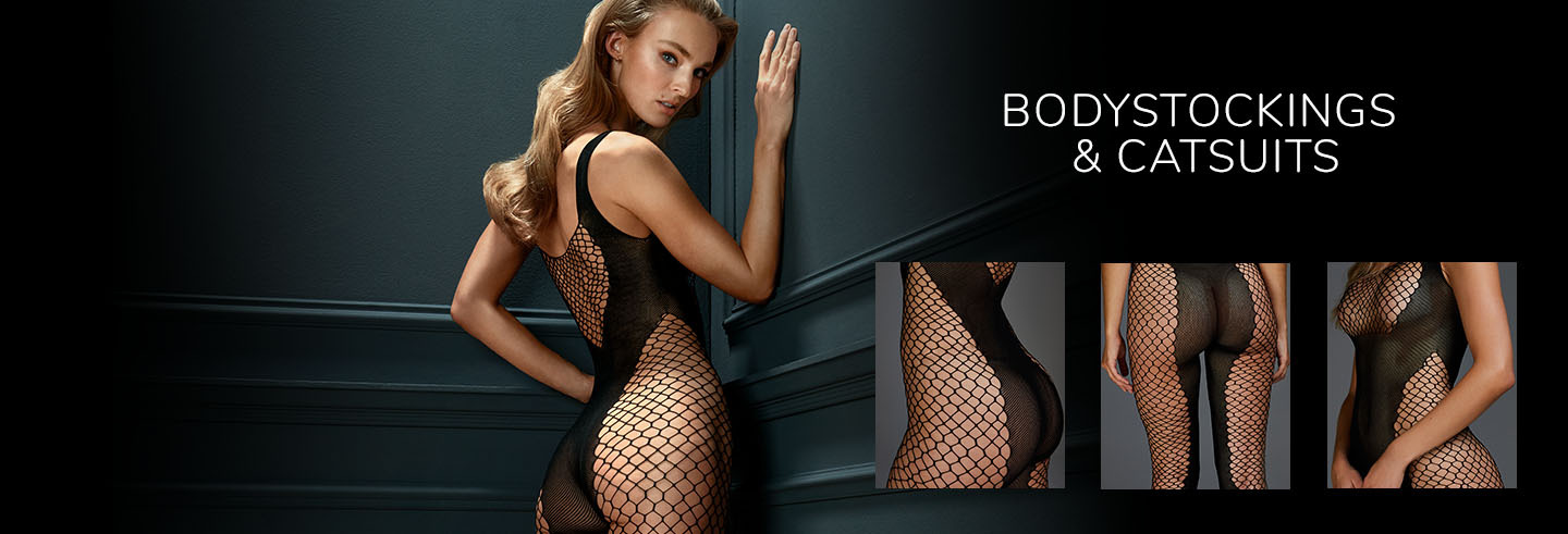 Unorthodox, yet super sexy - bodystockings and catsuits make for truly special lingerie. Granted, the entire body is covered up, however, with materials such as lace and leather, this creates an extravagant and sexy look. The fabric sits closely against the skin and follows the contours of your body. This really shows off your silhouette and your partner will be simply unable to resist this beautiful sight. Bodystockings and catsuits are intended for special times together as a couple and are certain to add some spice to your love life. You will be surprised at how sexy you will feel in a bodystocking. A leather catsuit will instantly transform you into a Femme Fatale. Add some matching accessoires and you can look forward to a thrilling night...
