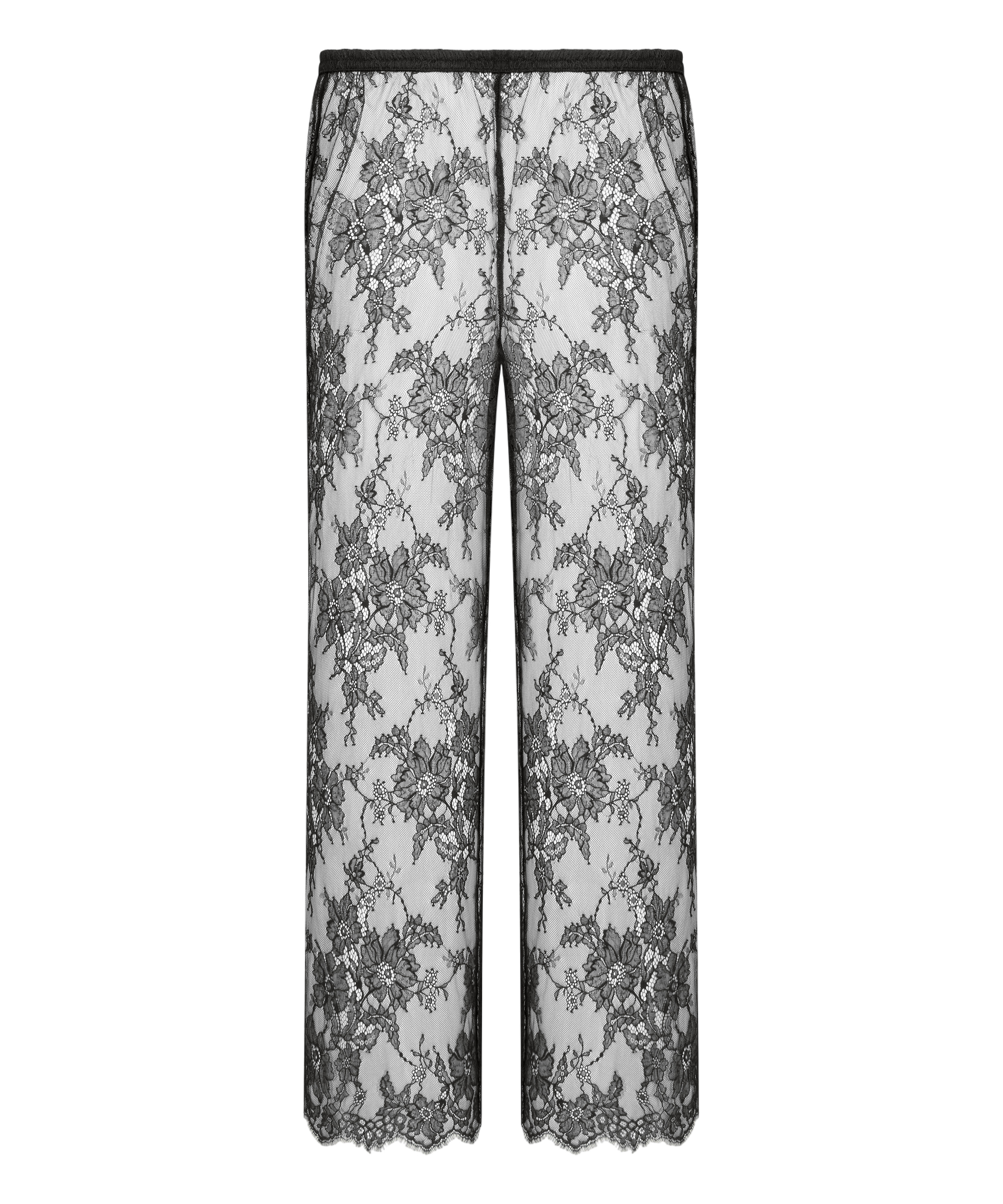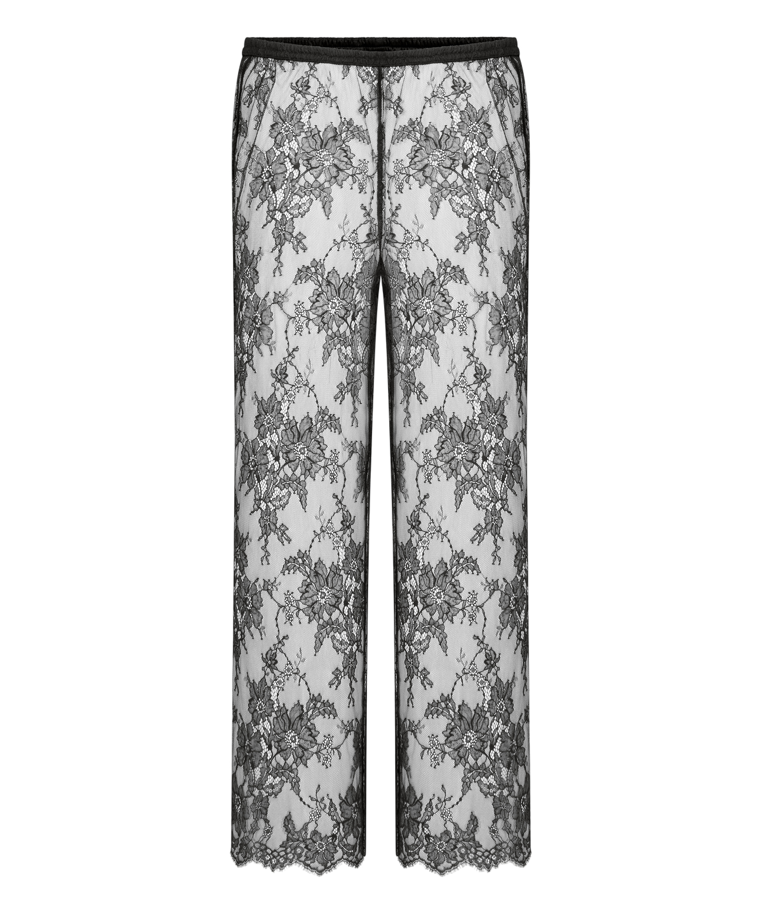 Elevate your wardrobe with these effortlessly chic lace pants, designed to blend comfort with statement style. Made from all-over floral lace, they offer a delicate texture and a semi-sheer finish that’s perfect for layering or dressing up.The elasticated waistband ensures a comfortable, flexible fit, while the wide-leg silhouette adds graceful movement to every step. Combine with the matching top for a complete look.
