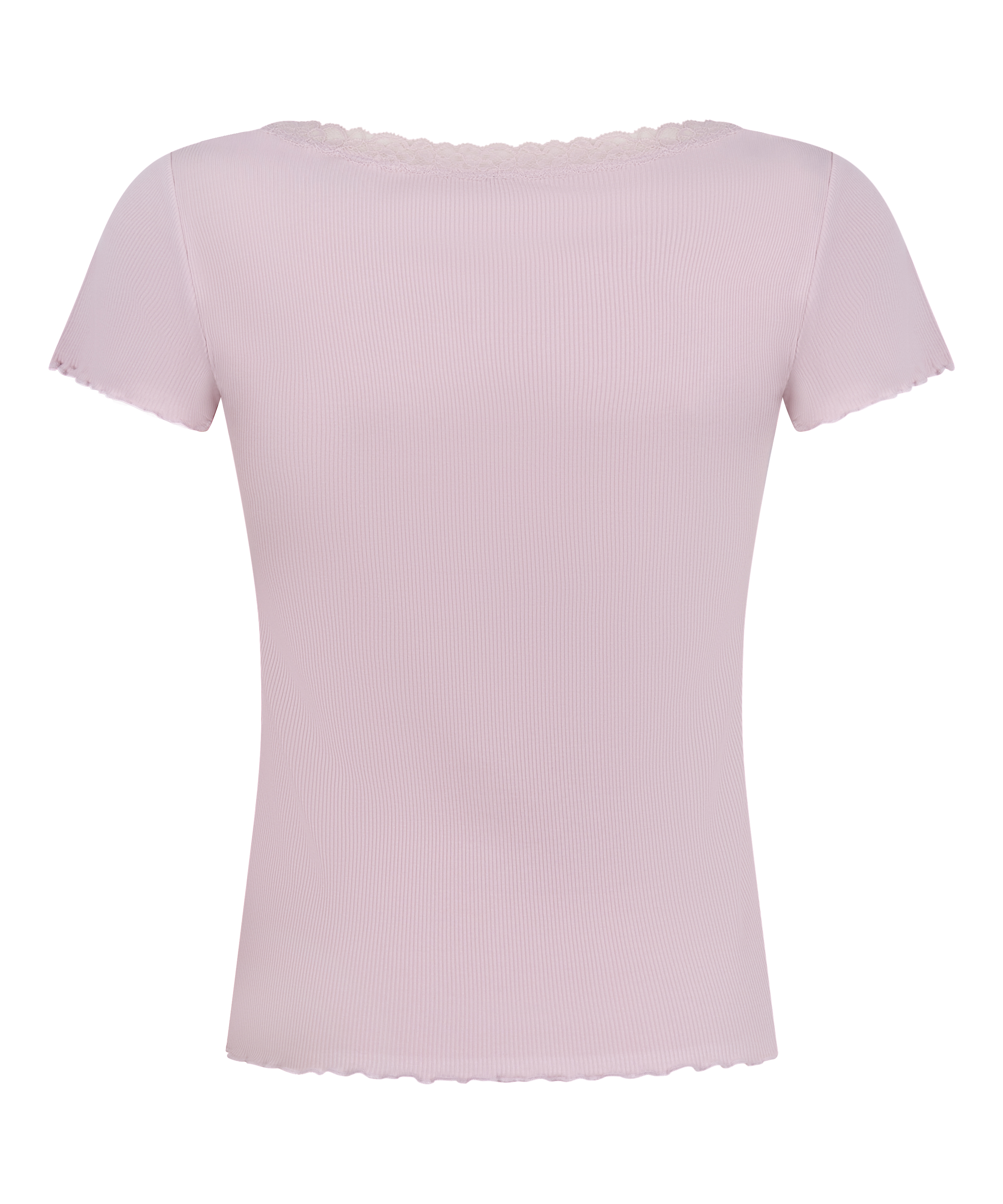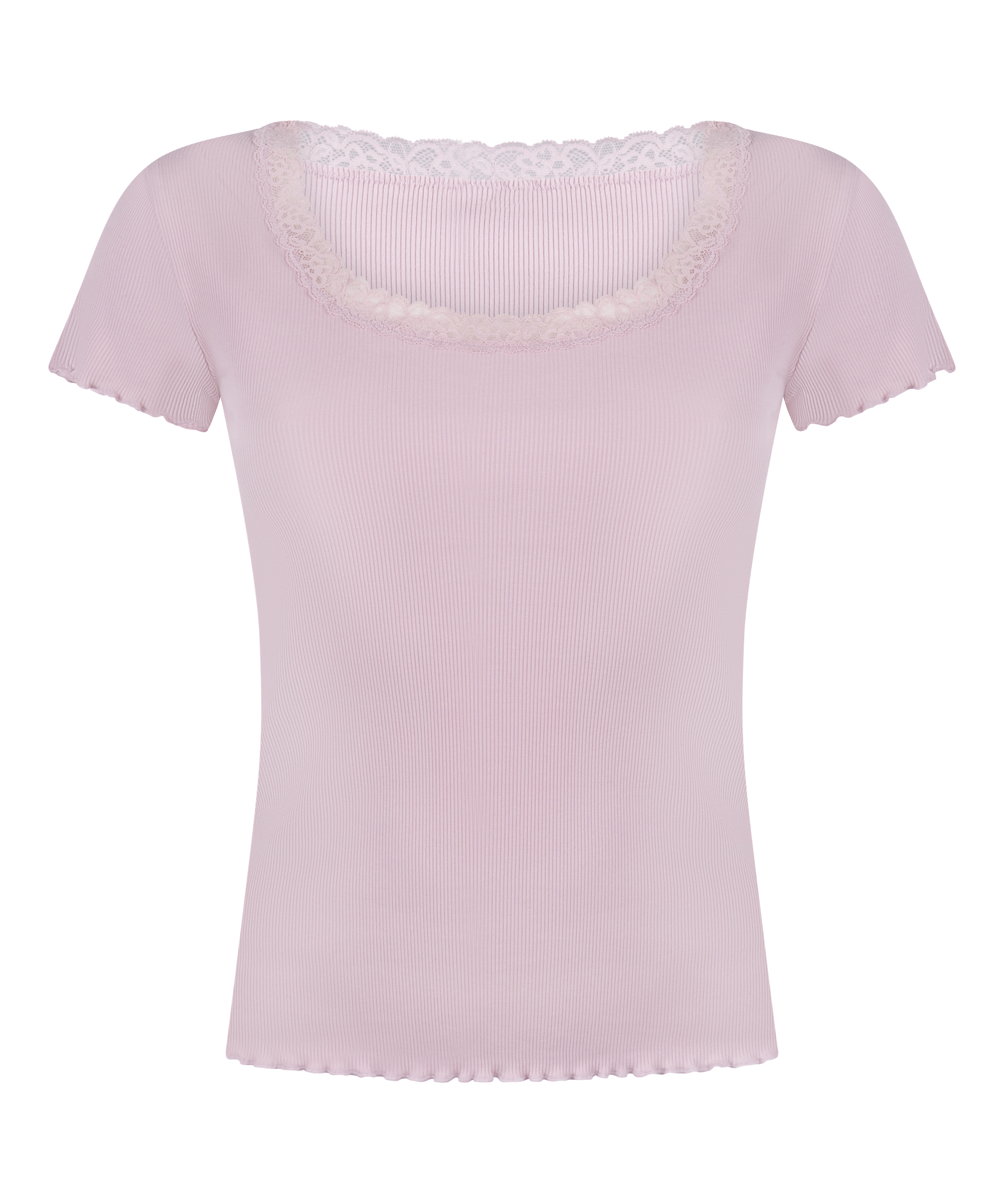 Cute and comfy, this jersey rib top is the ultimate mix of casual and chic! Made from soft ribbed fabric with short sleeves for everyday comfort, it’s finished with delicate lace embroidery along the neckline for that sweet, feminine touch. Perfect for dressing up your basics while keeping it effortlessly pretty. Match it with the pairing bottom pants for a complete lounge look!