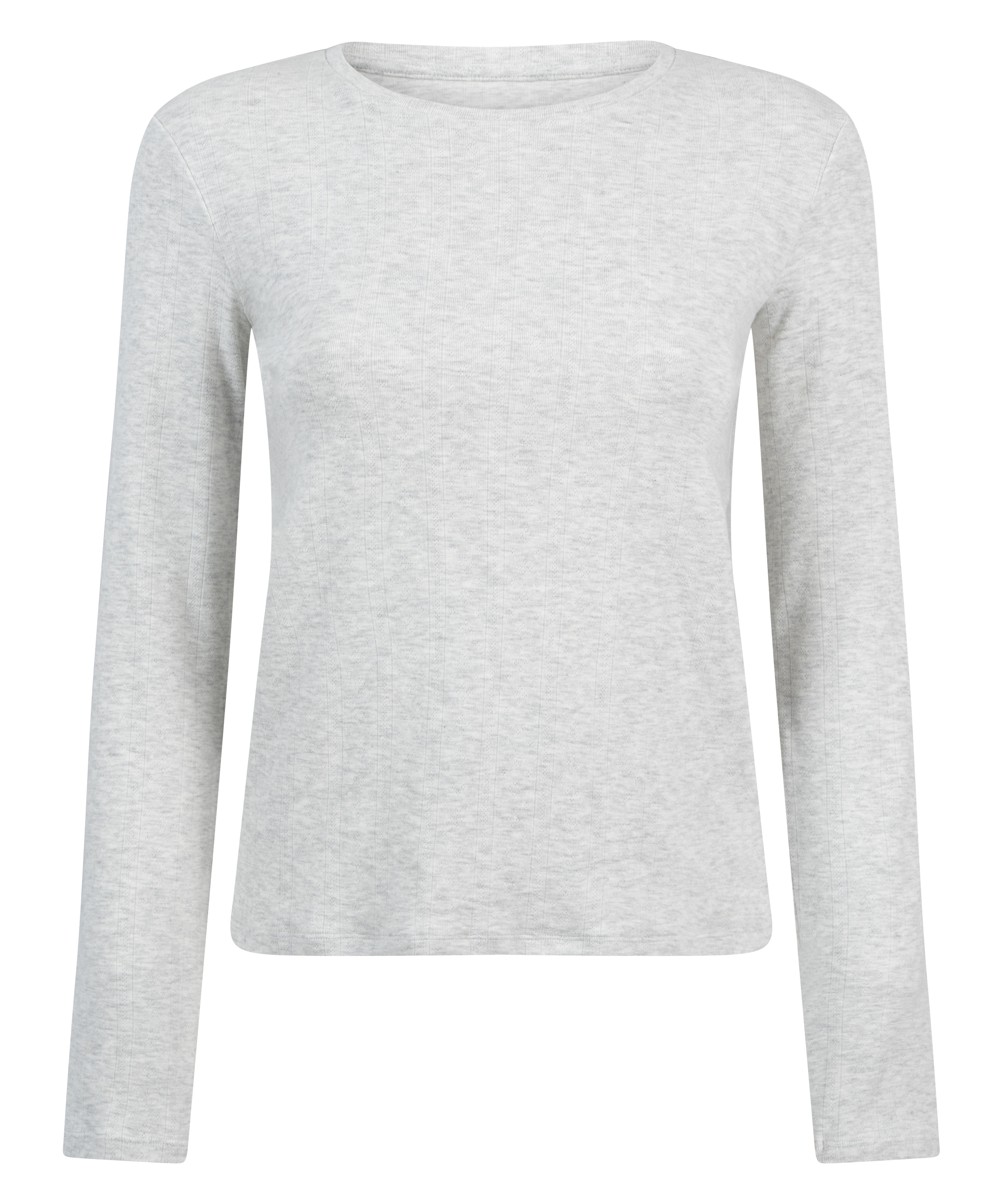 Embrace cozy elegance with our pointelle pyjama top. This top features a delicate, textured design that adds a touch of sophistication to your loungewear. The round neck offers a flattering, classic shape, while the long sleeves provide warmth and comfort for cooler night.