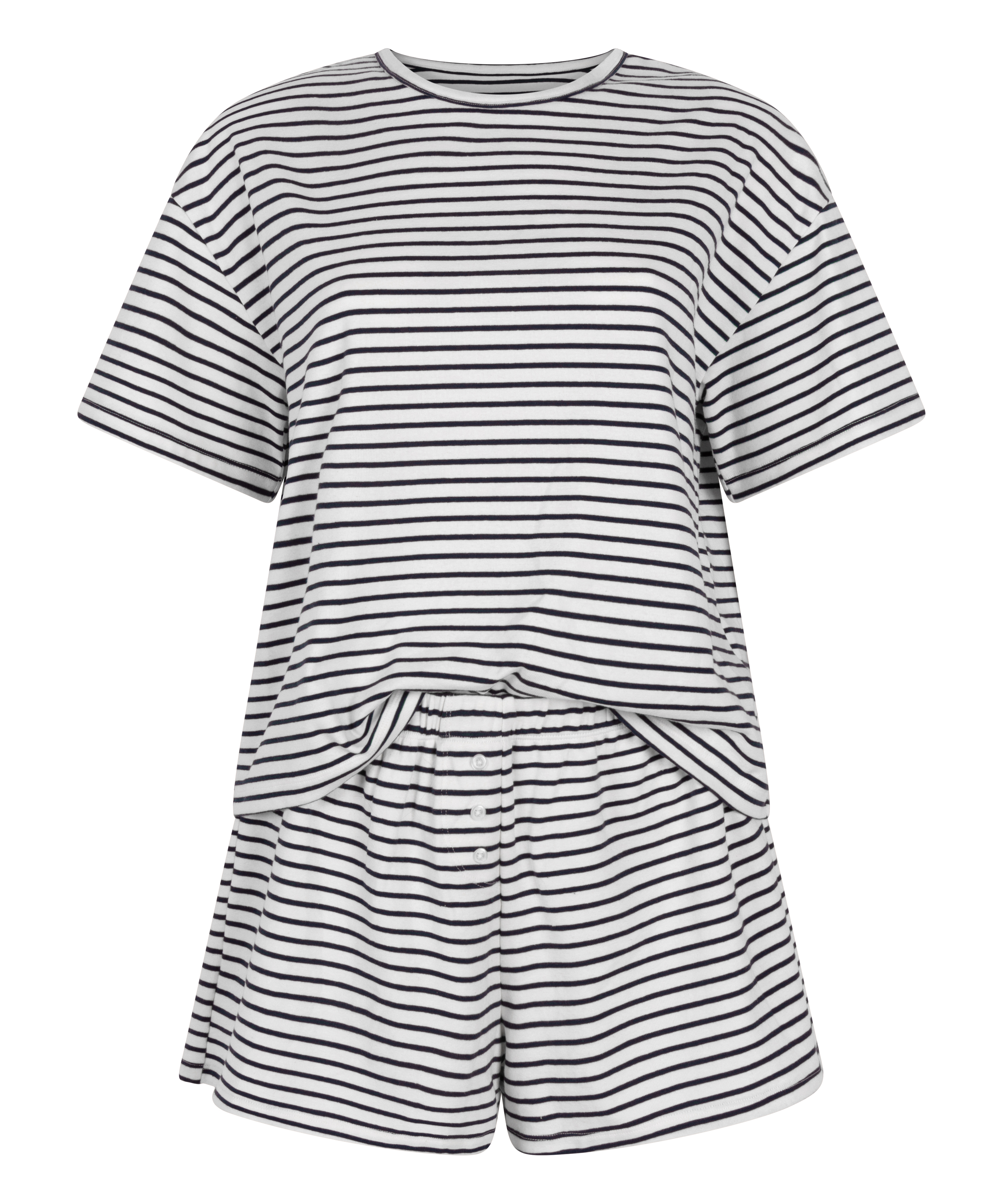 Relax in comfort and style with this cozy pyjama set. Featuring a pair of short and a matching short-sleeved T-shirt. Made from jersey fabric, this set is designed to move with you for a perfect night's sleep or lounging. The relaxed fit make it a go-to favorite for warm night, a must have set for your sleepwear drawer.