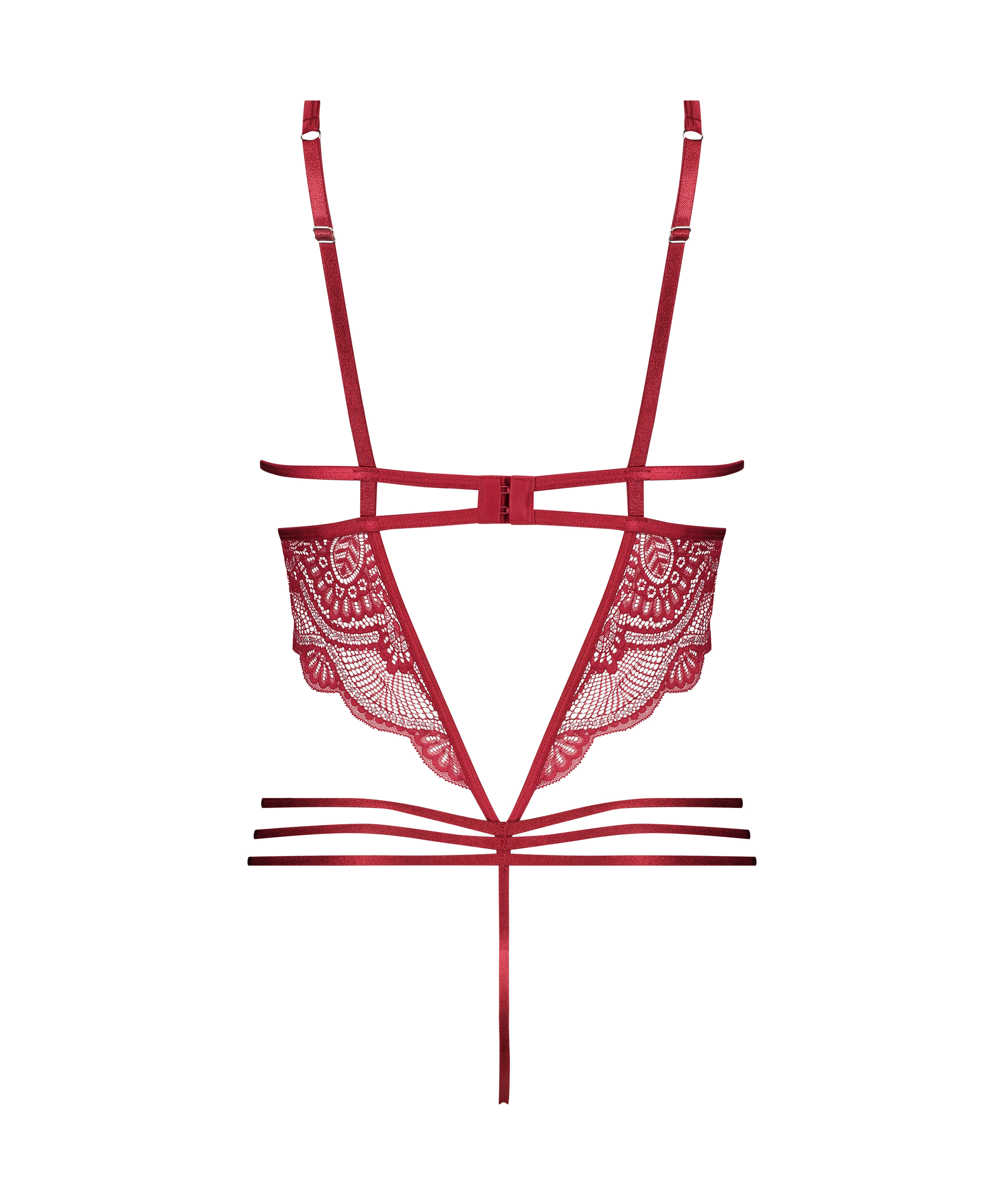 This satin body is trimmed with lace. The body has underwired cups. Its extra strappy details add the finishing touch. Part of the Private Collection.