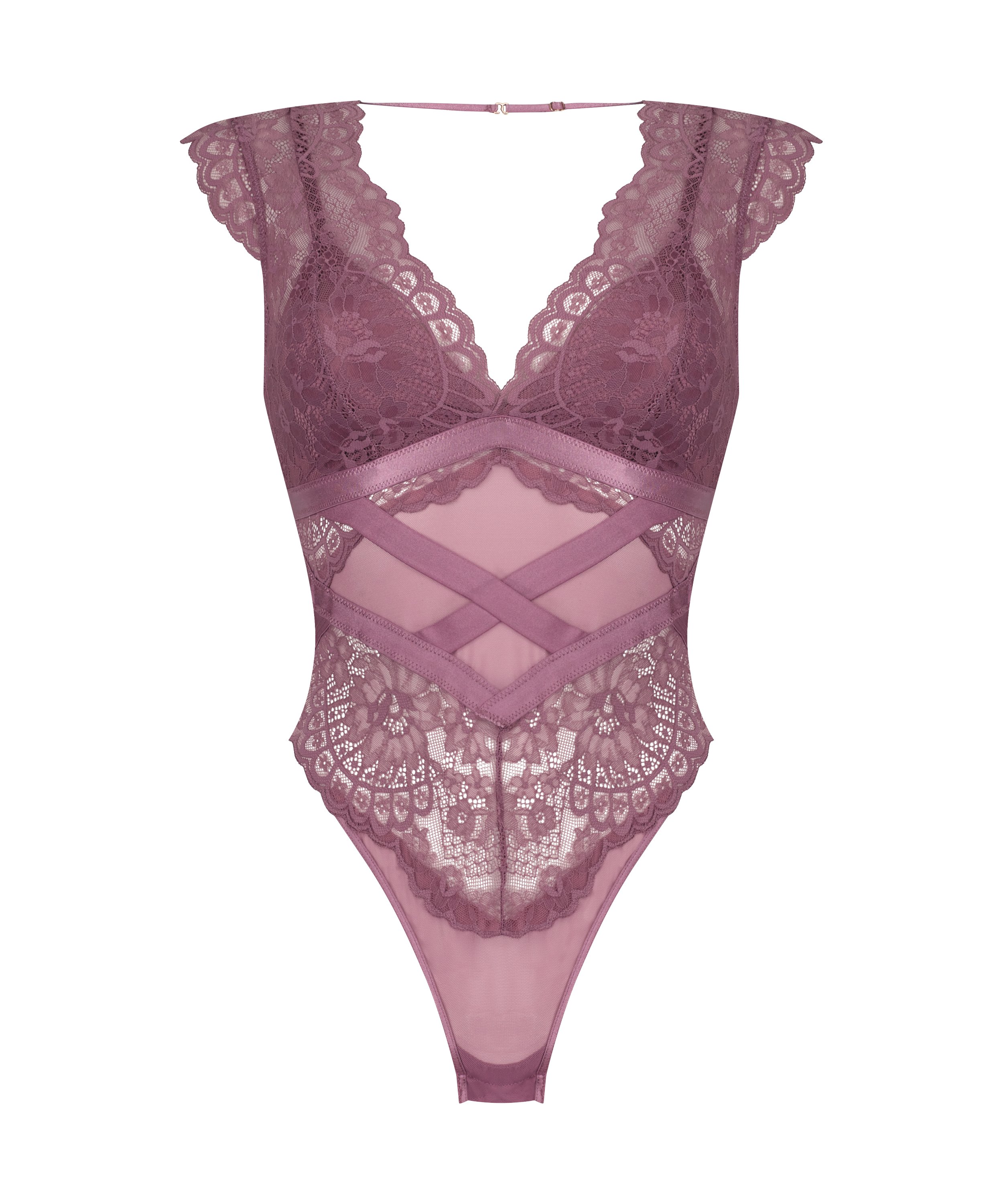 Elevate your lingerie game in this Rabella bodysuit! Floral lace exudes classic sensuality with a hint of stretch for comfort, while strapping details and cheeky cut-outs add a modern, seductive edge. The body has removable padding and a press-stud closure at the bottom.