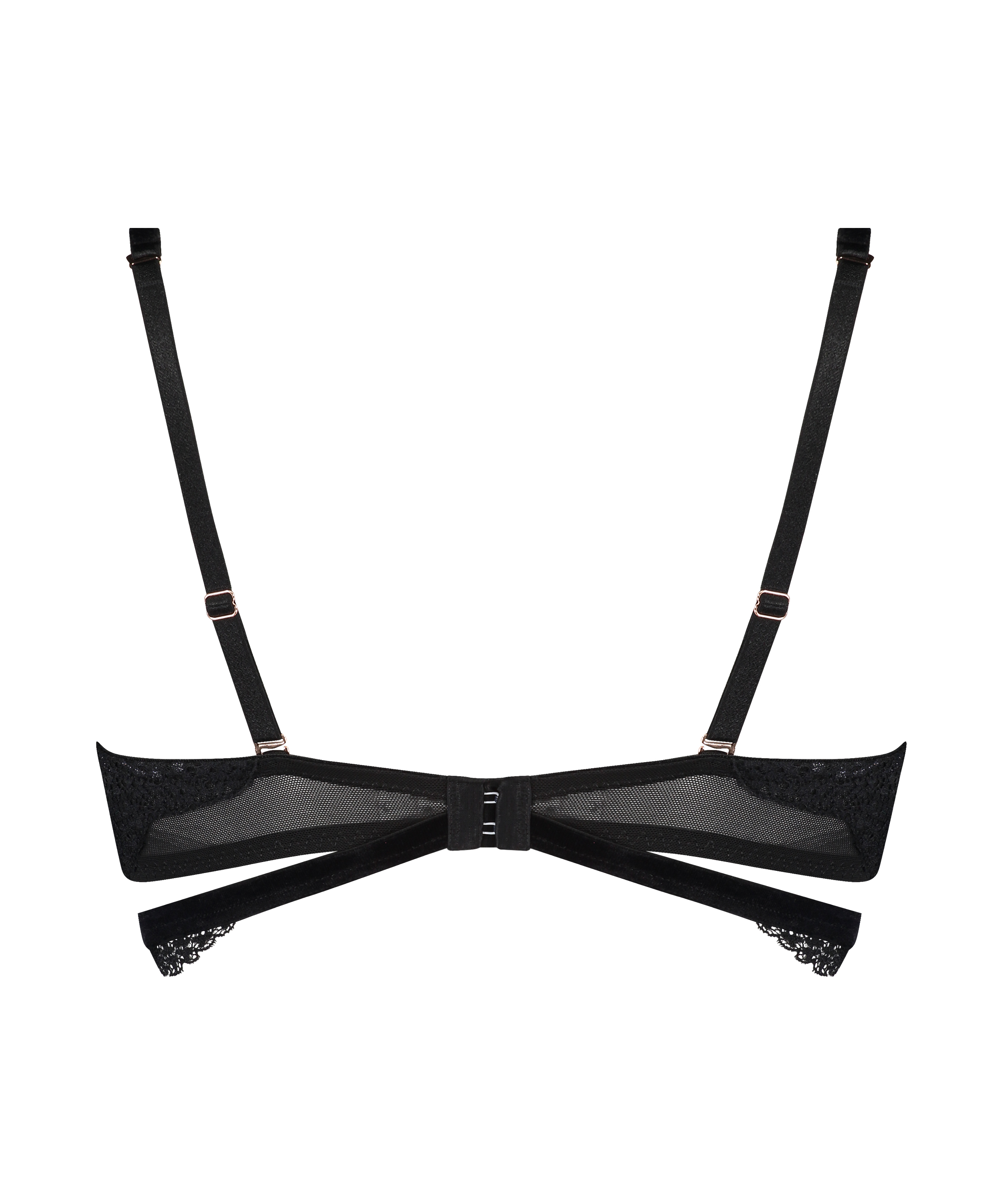 This perfect plunge bra is super sexy because of the semi-transparent lace! There is also a small strap, so you can change the bra into a halter bra.The bra shows a lot of your body so that your curves are extra accentuated. Combine with matching items for a complete look! Part of the Rebecca Mir Collection.