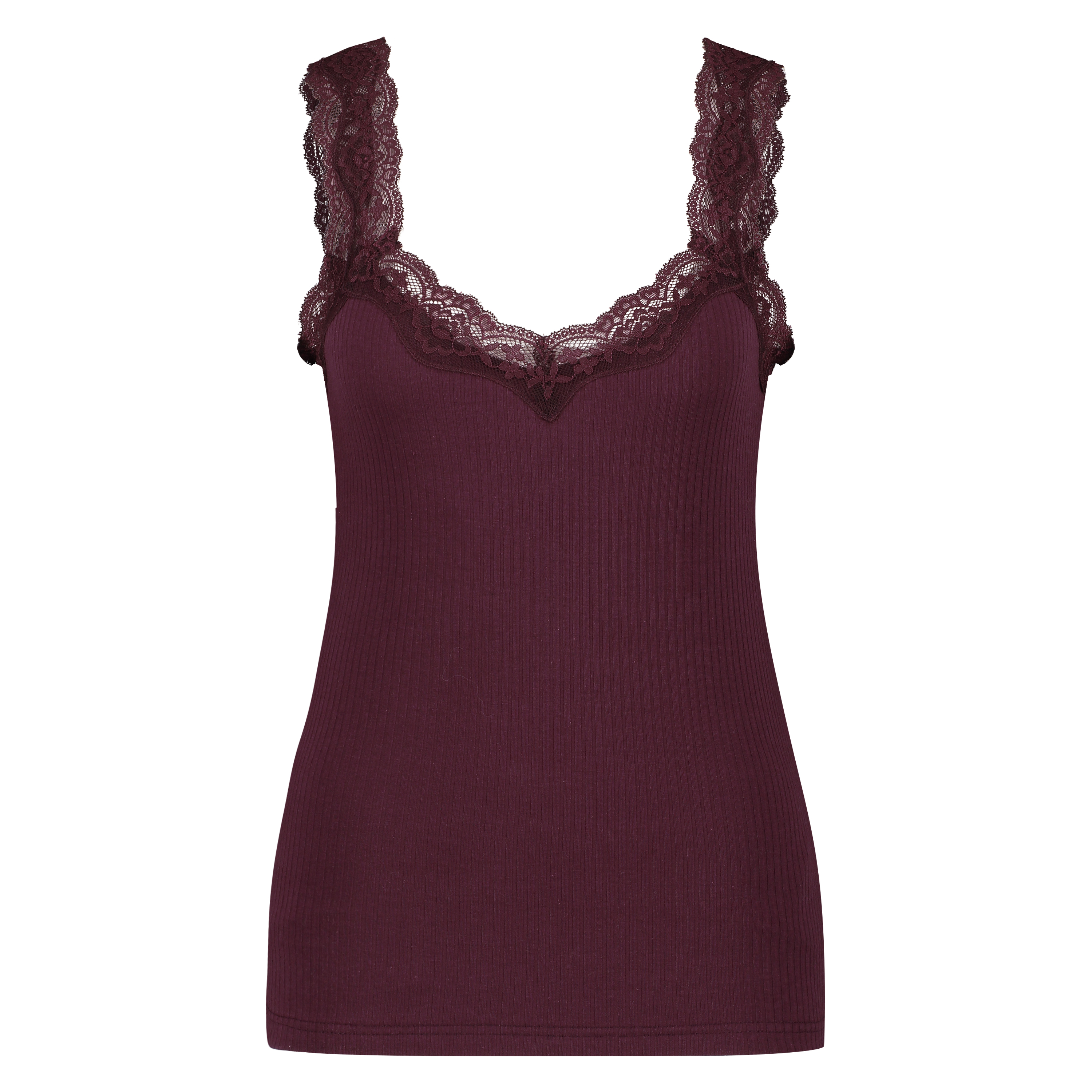 This cami has a rib pattern. The upper edge is finished with lace details. Combine with one of the matching items!