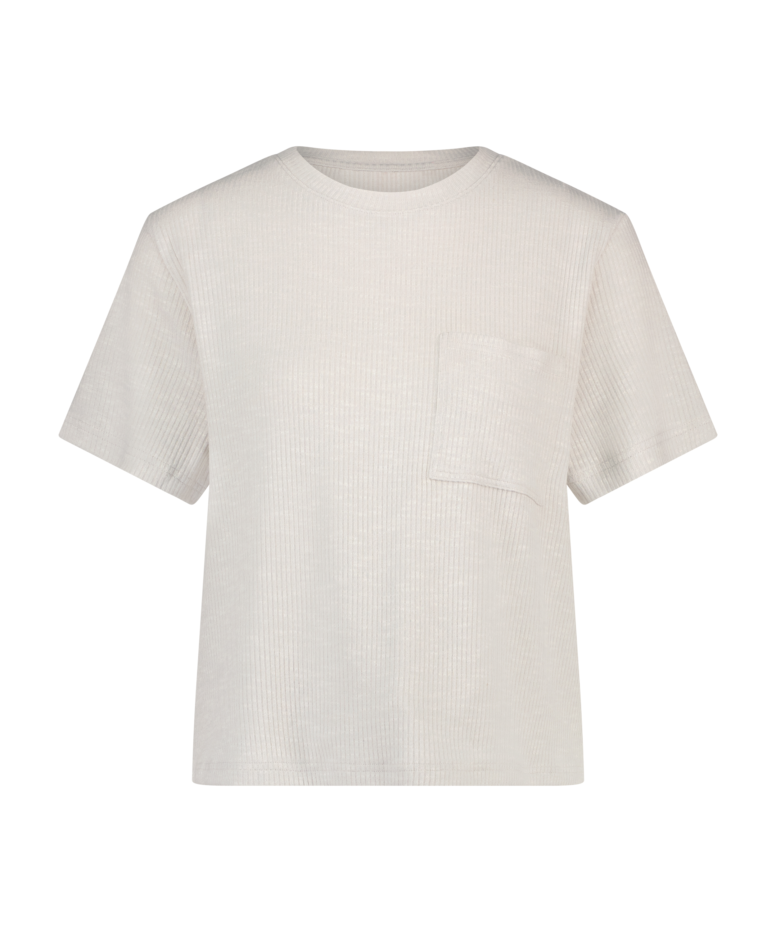 This short-sleeved pyjama top is great! It is made of a ribbed fabric and is very stretchy. Combine with matching items.