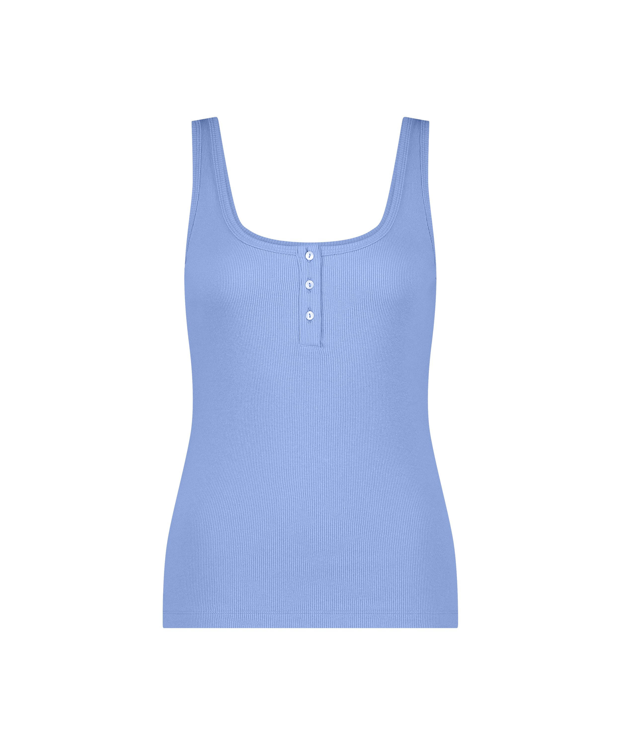 This singlet is made from ribbed cotton and is finished with an elegant lace edge. Combine this singlet with matching shorts. Comfortable to sleep in but also a great top to wear out!