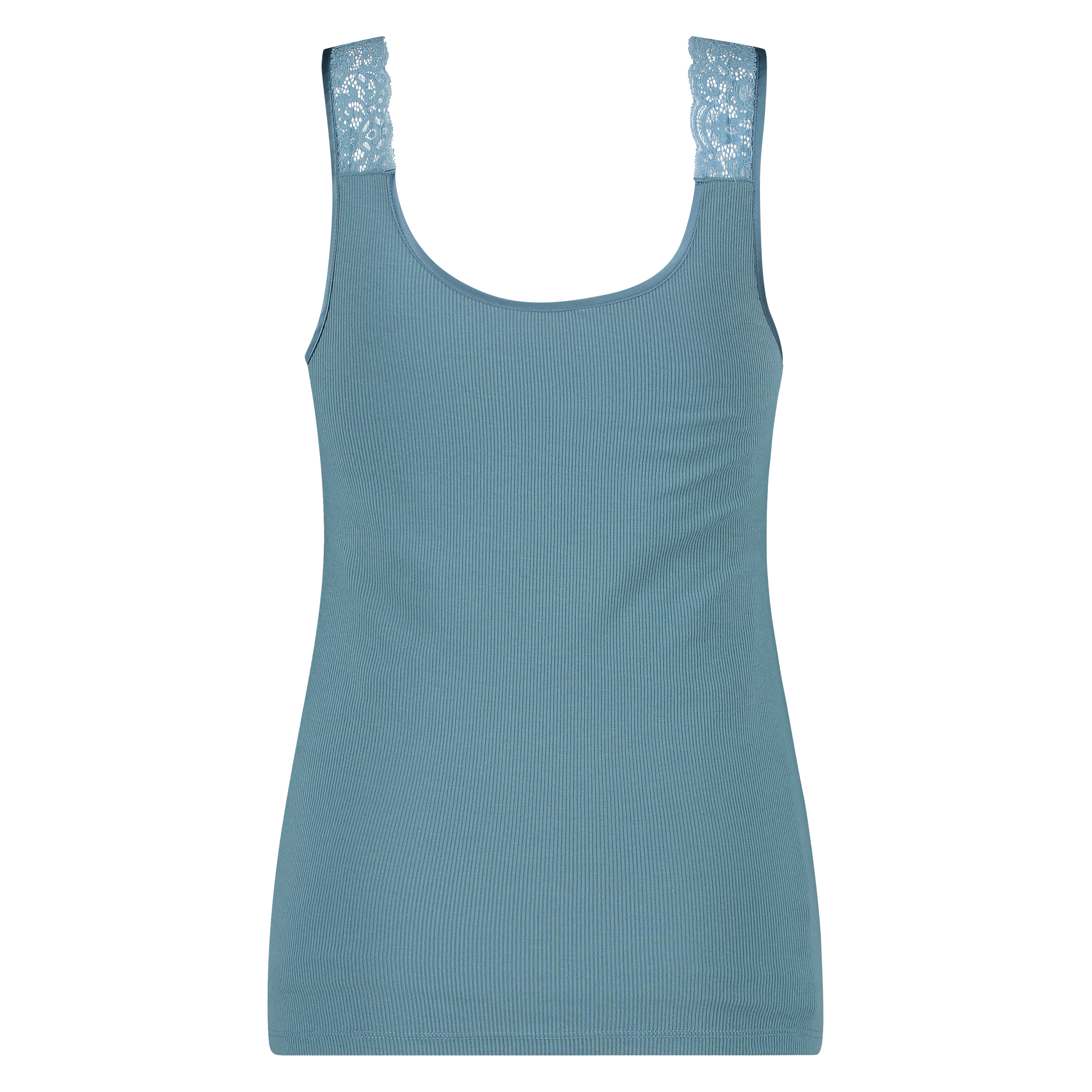 This singlet is made from ribbed cotton and is finished with an elegant lace edge. Combine this singlet with matching shorts. Comfortable to sleep in but also a great top to wear out!