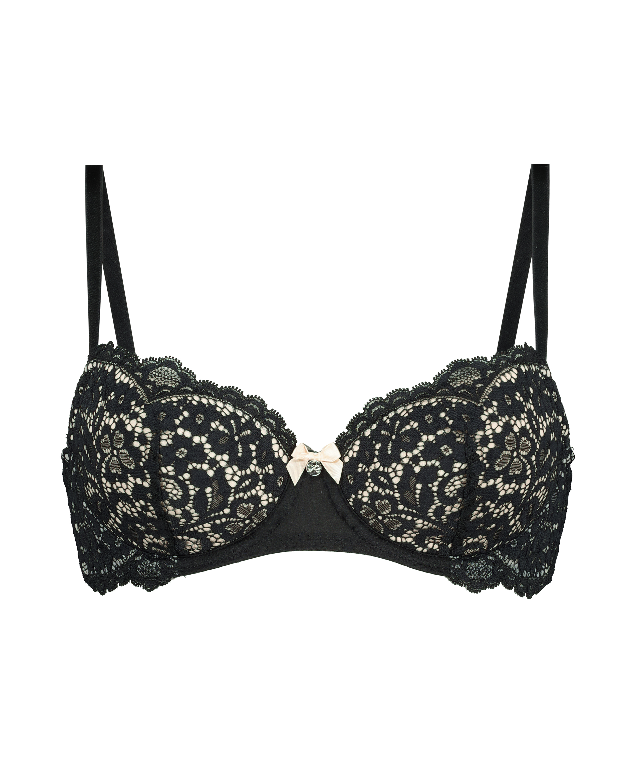 This bra is a real must-have! The bra is trimmed with beautiful lace and has fun detailing such as the bow and coloured fabric showing under the lace. Combine it with the matching knickers for a complete set!