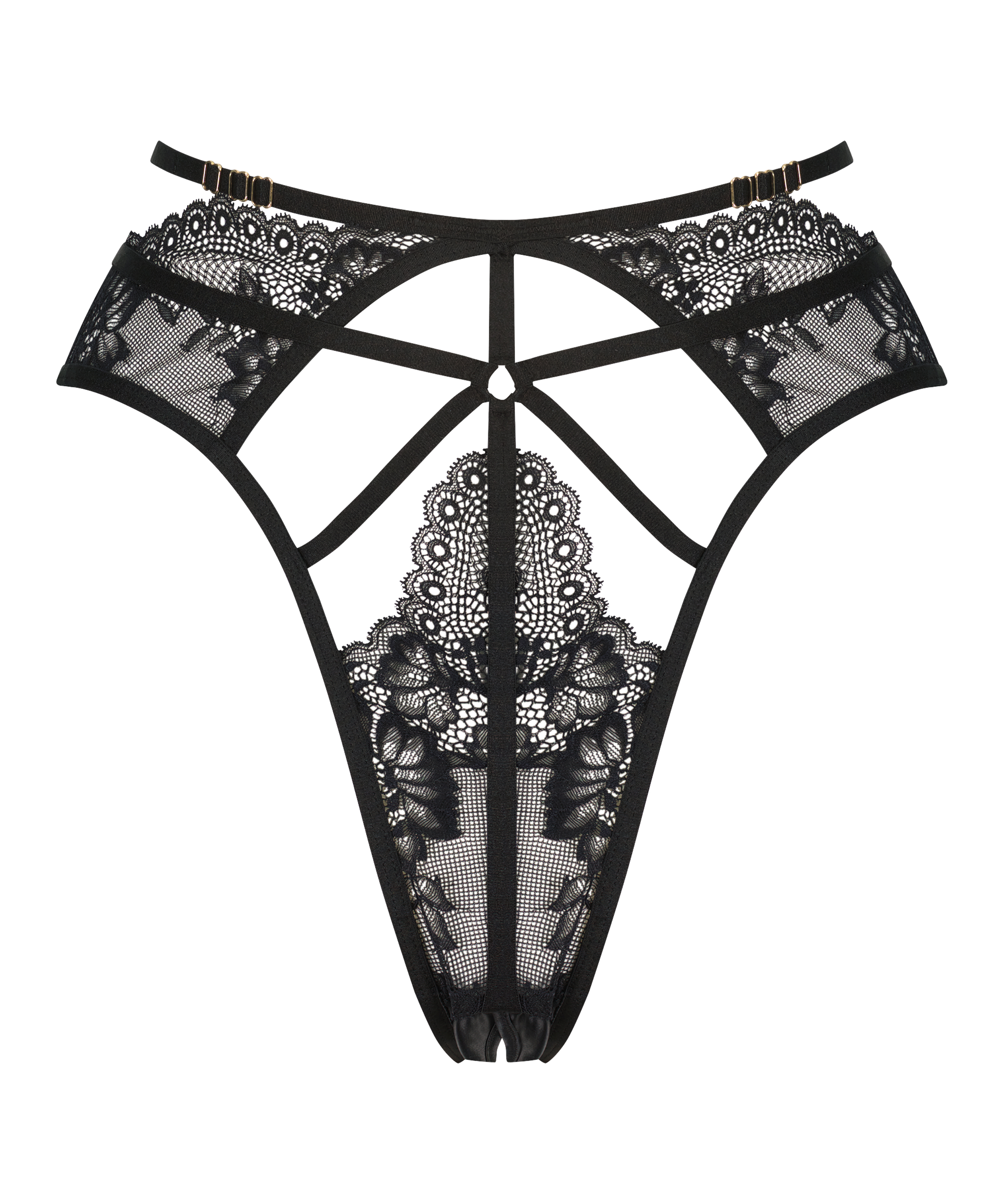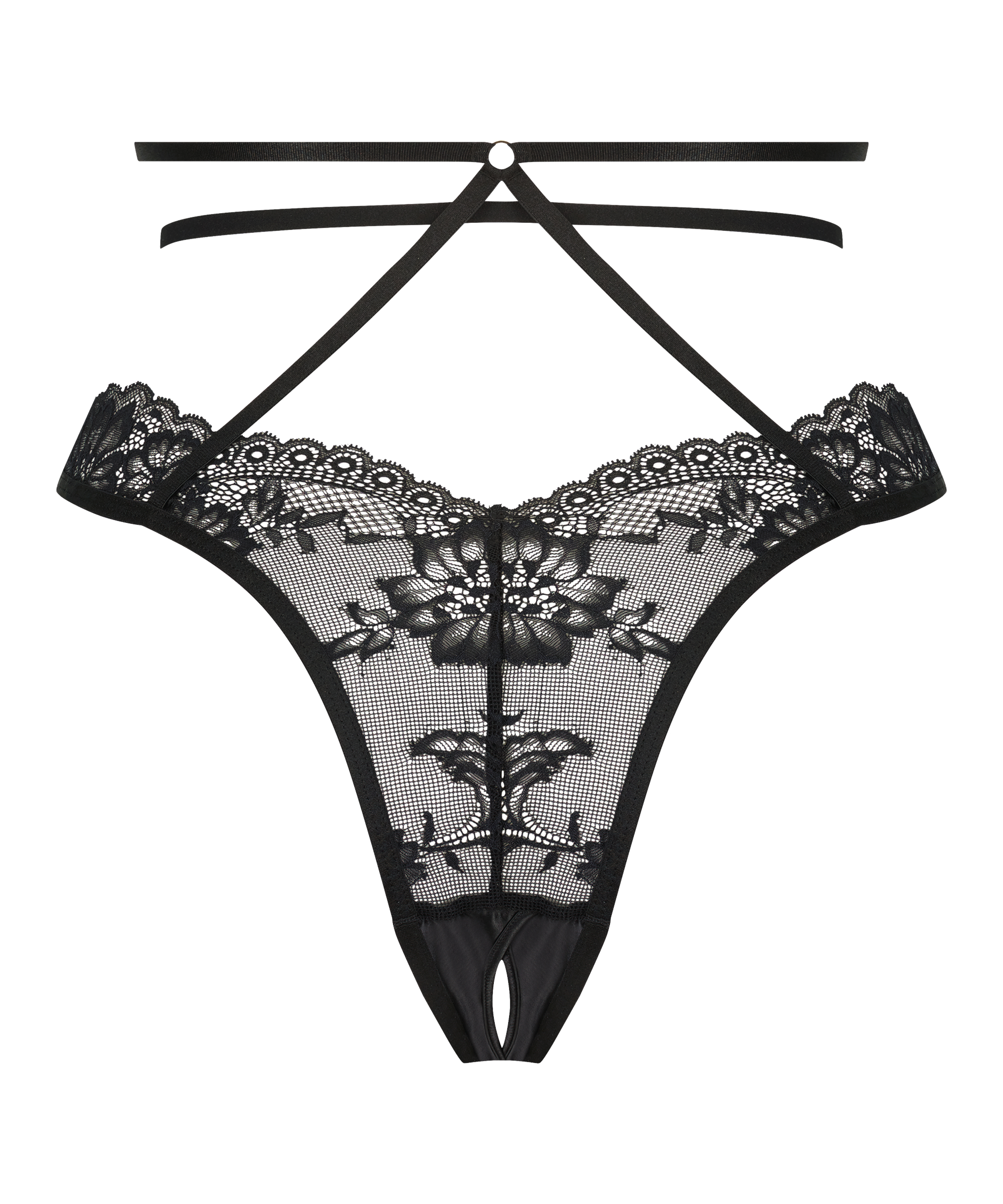 Spice things up with this unique open-crotch brazilian. With an overall lace look in the front and back, with lots of strappy details and cut-outs for the outmost sexiness. The open crotch adds an extra level of spicy. Complete the set with the matching bra!