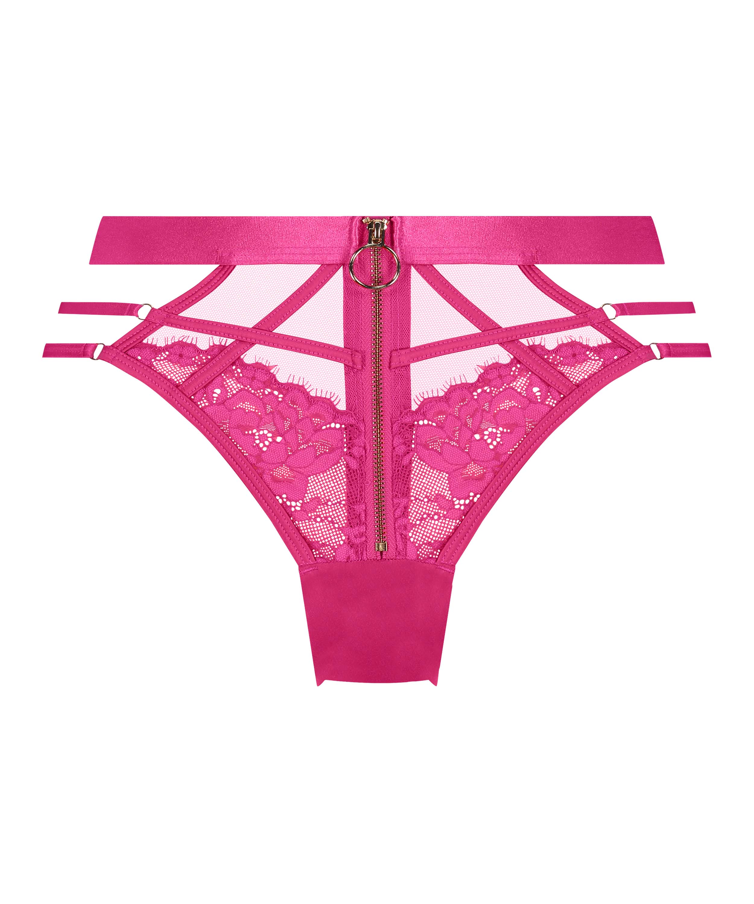 Complete your set with this sexy brazilian knickers. This brazilian knickers features a zip and lace for a very sexy effect. From our Private collection.