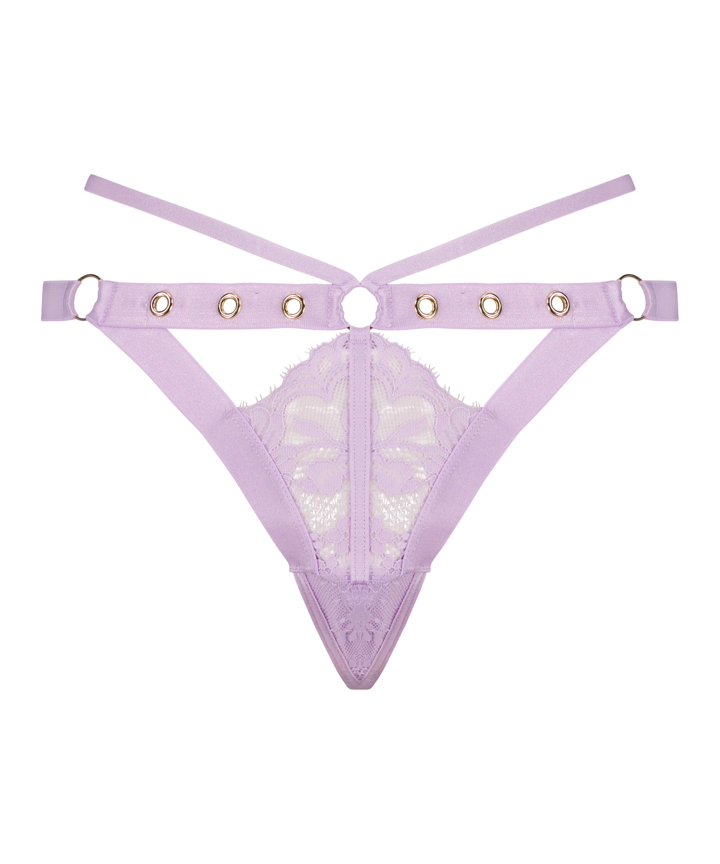 Complete your provocative outfit with this sexy thong! The thong has strappy details and is made almost entirely of lace. Also, with various metal rings. Combine with matching bra from the Private Collection for a complete set!