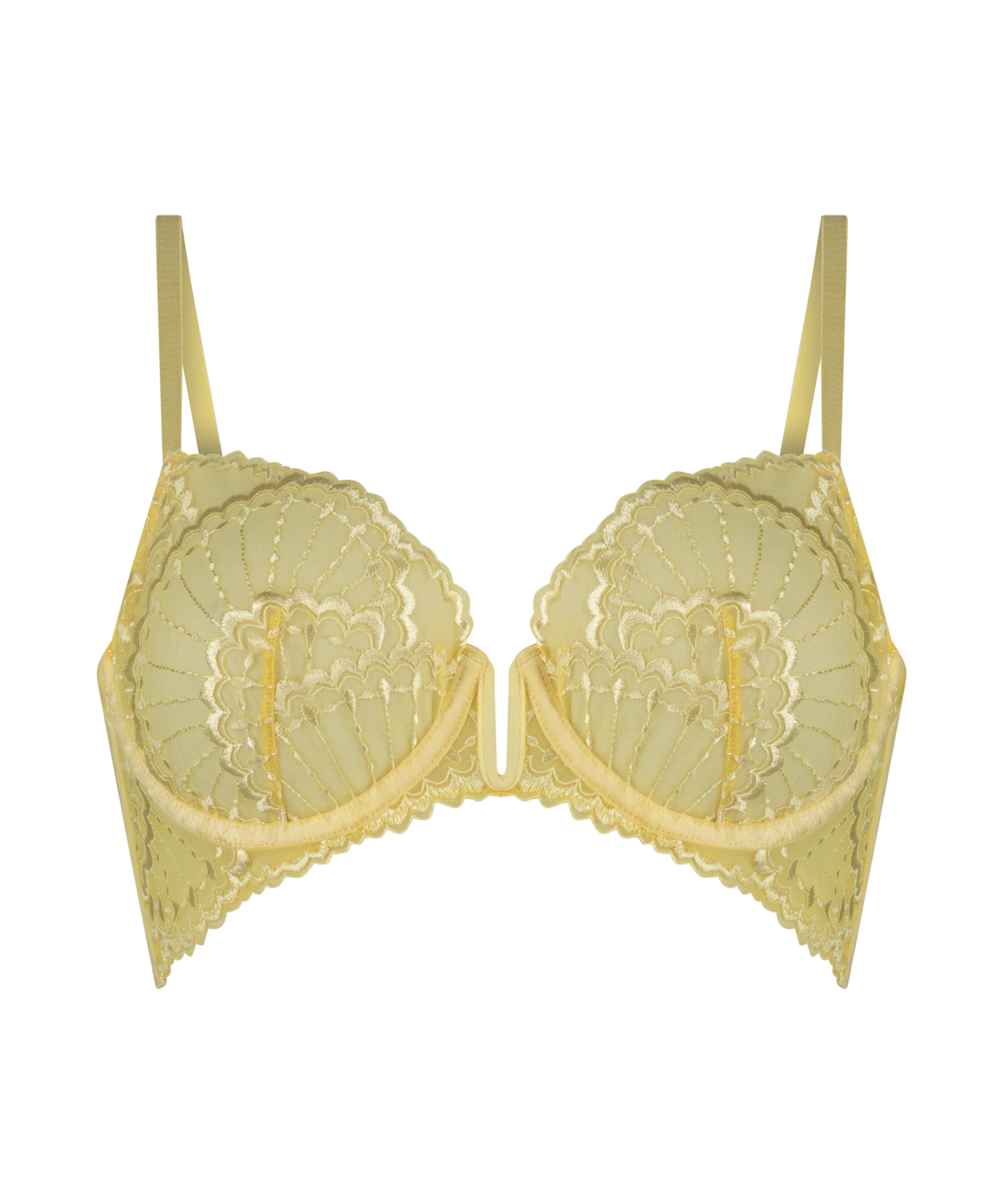 Dazzle in this luxurious and elegant bra! Crafted from delicate mesh intricately embroidered with floral motifs, this non-padded bra exudes timeless charm. It has a hook and eye closure in the back and adjustable straps for a customizable fit. Pair it with a matching bottom to complete the look!
