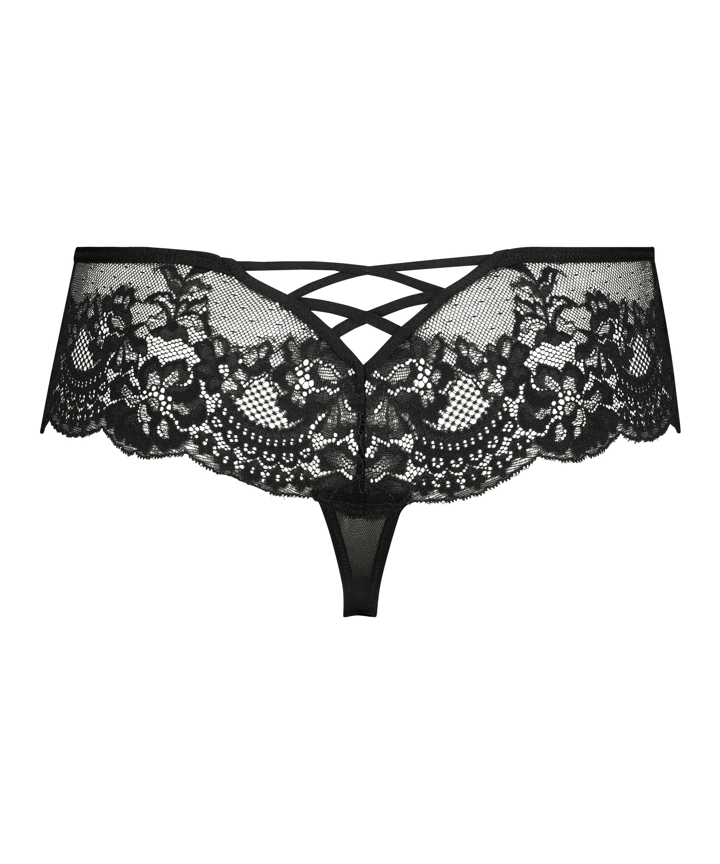 How sexy are these thong boxers?! They come in a shiny, micro fabric for a glamorous look and are made with oodles of lace. The back includes an elastic v-opening, adding a super sexy touch! Combine with a matching bra for a gorgeous set.