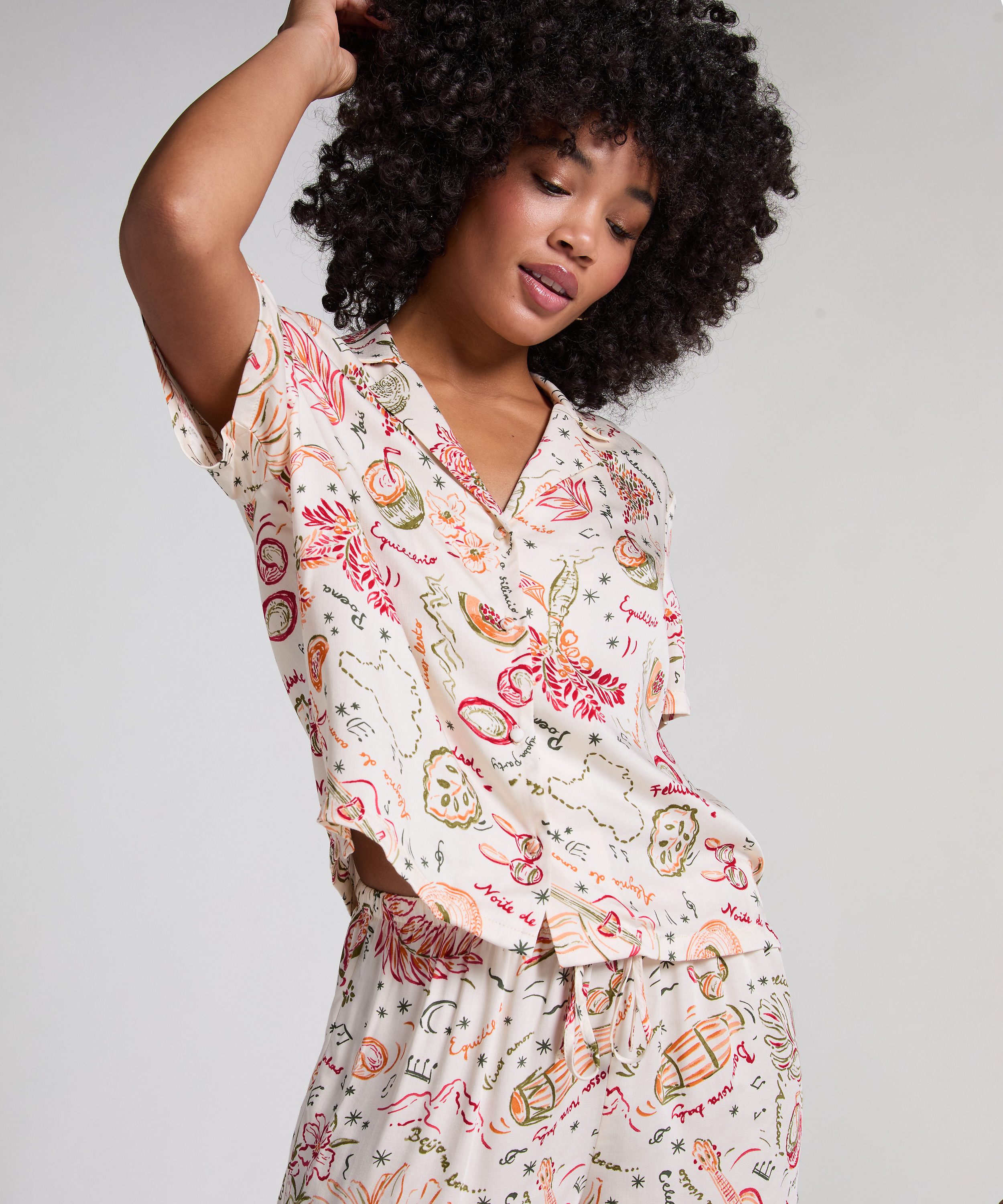 This sleep shirt features a soft, lightweight fabric that provides ultimate comfort for a restful night. The elegant collar with a folded design and V-neckline add a touch of sophistication. Fabric-covered buttons complete the refined look for a peaceful yet stylish sleep experience.