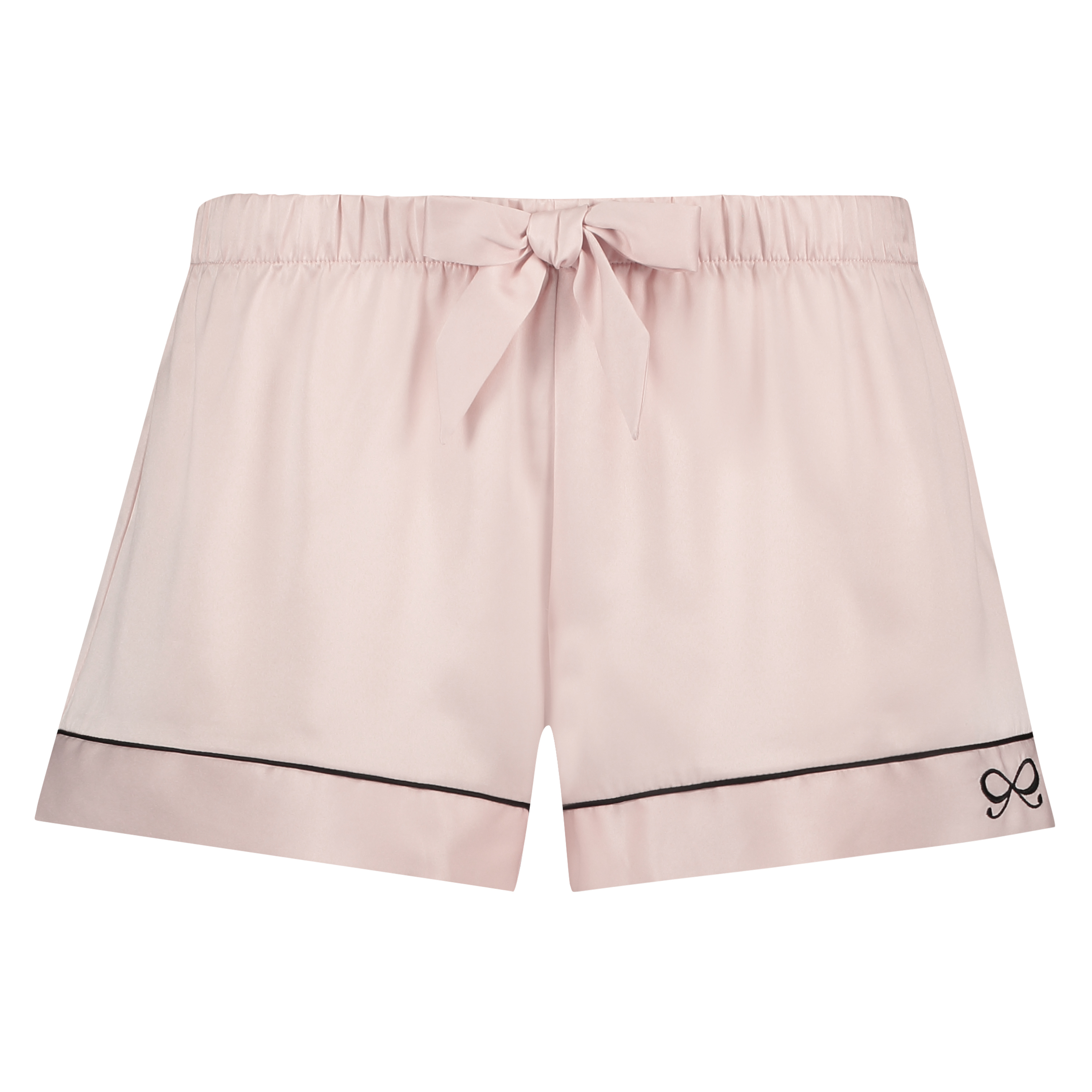 These pyjama shorts have a satin look and feel and a satin bow on the front.