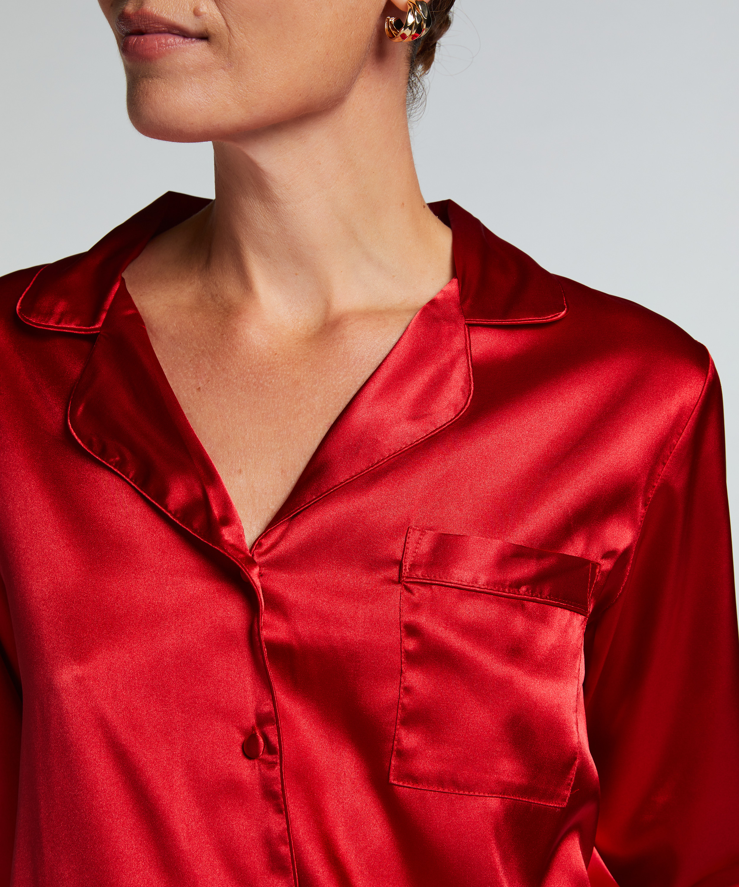 Satin Long-Sleeved Jacket - Red