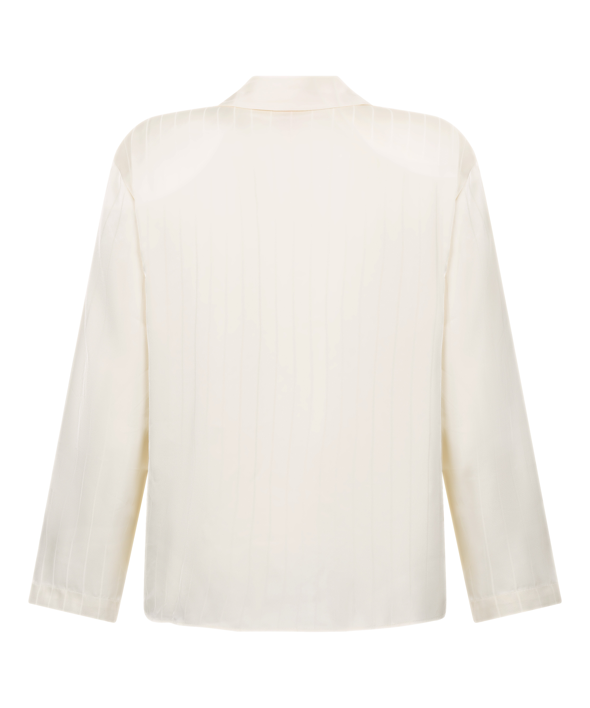 Sleepwear, but make it chic. This satin pinstripe pyjama jacket brings tailored elegance to your lounge look, with classy shine buttons, a sleek breast pocket, and a relaxed fit that feels as good as it looks. Pair it with matching bottoms for effortless cool.