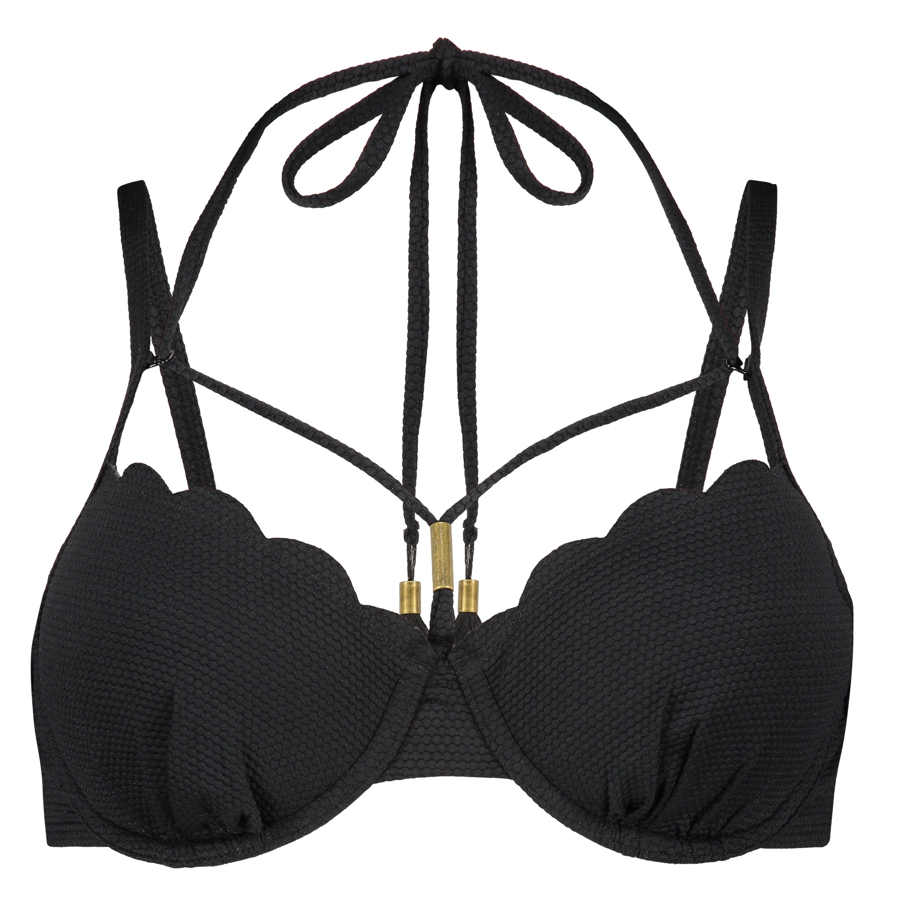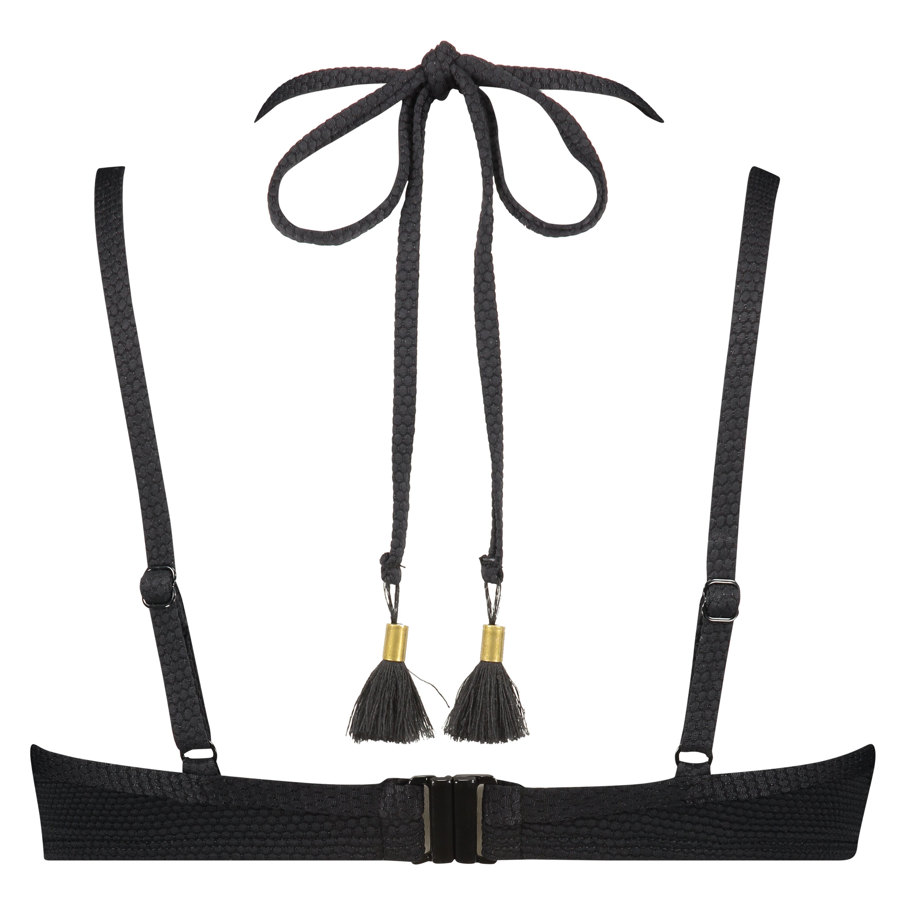 Feel self-confident on the beach with this bikini top with adjustable shoulder straps. The necklace adds an extra feminine detail. You can also detach the necklace.