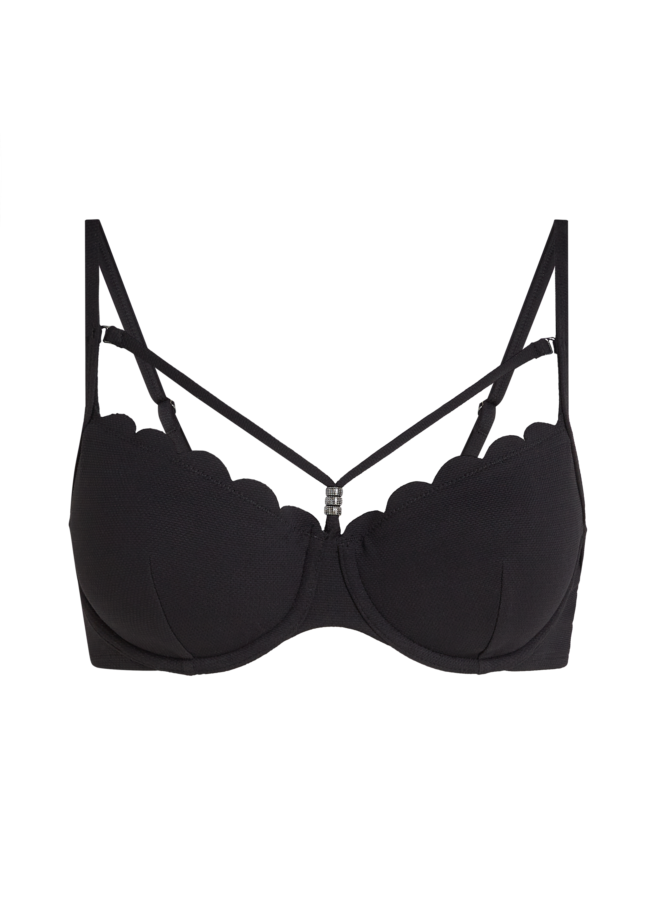 Scallop Padded Underwired Bikini Top - Black