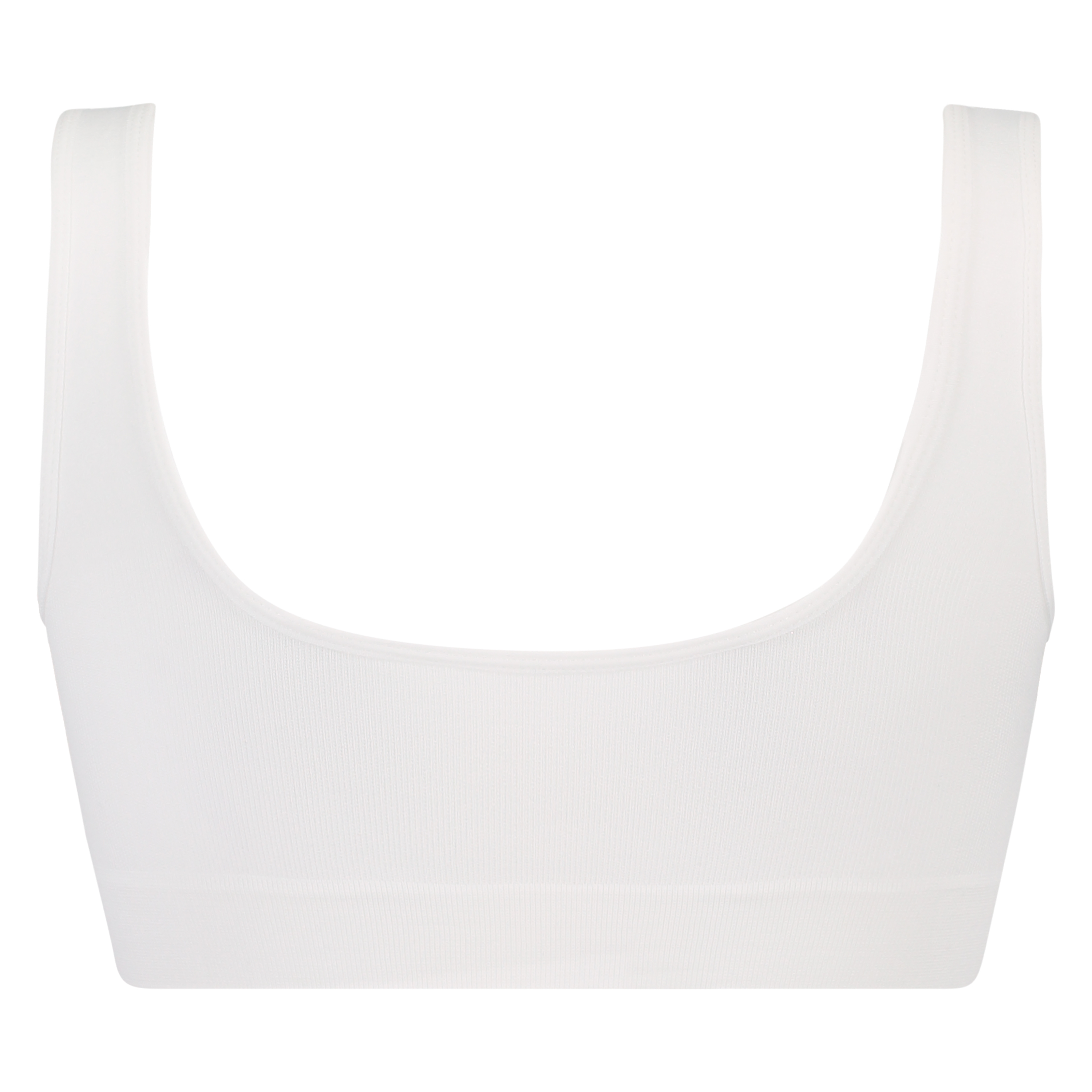 Seamless and not underwired. Elastic at the bottom to ensure the top stays in place. The microfibre fabric is very comfortable to wear.