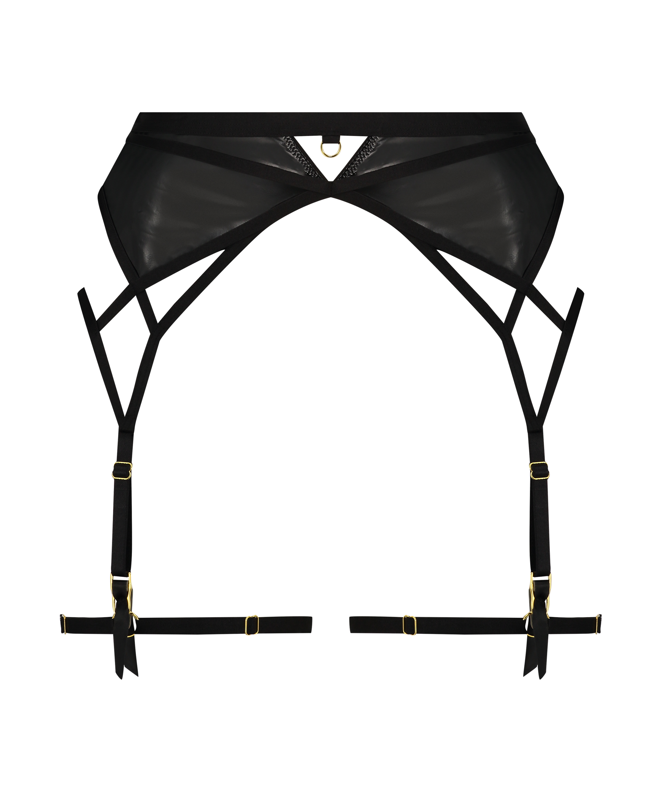 Go for an exciting look with these suspenders! With sexy cut-out details and a glossy look. Pair with the matching items. Part of our Private collection.