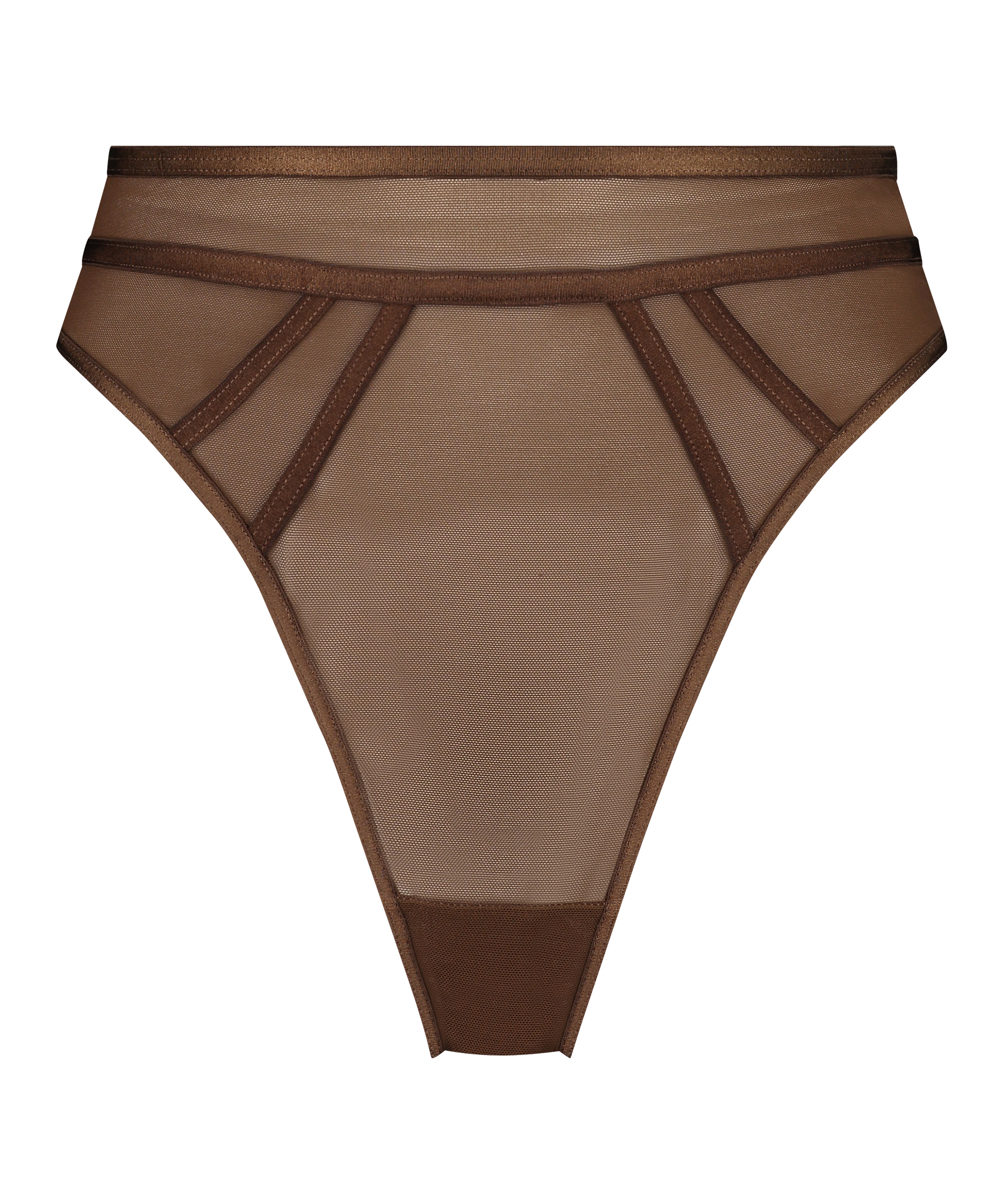 Feel fabulous in this lovely thong! It is high-cut, made entirely of mesh, and has gorgeous strappy details. Combine with the matching bralette for a complete look. Part of the P.O.P. 'Power of Positivity' collection. An inspiring and energetic 'think positive' attitude, this collection embraces self-love, diversity and a conscious lifestyle.