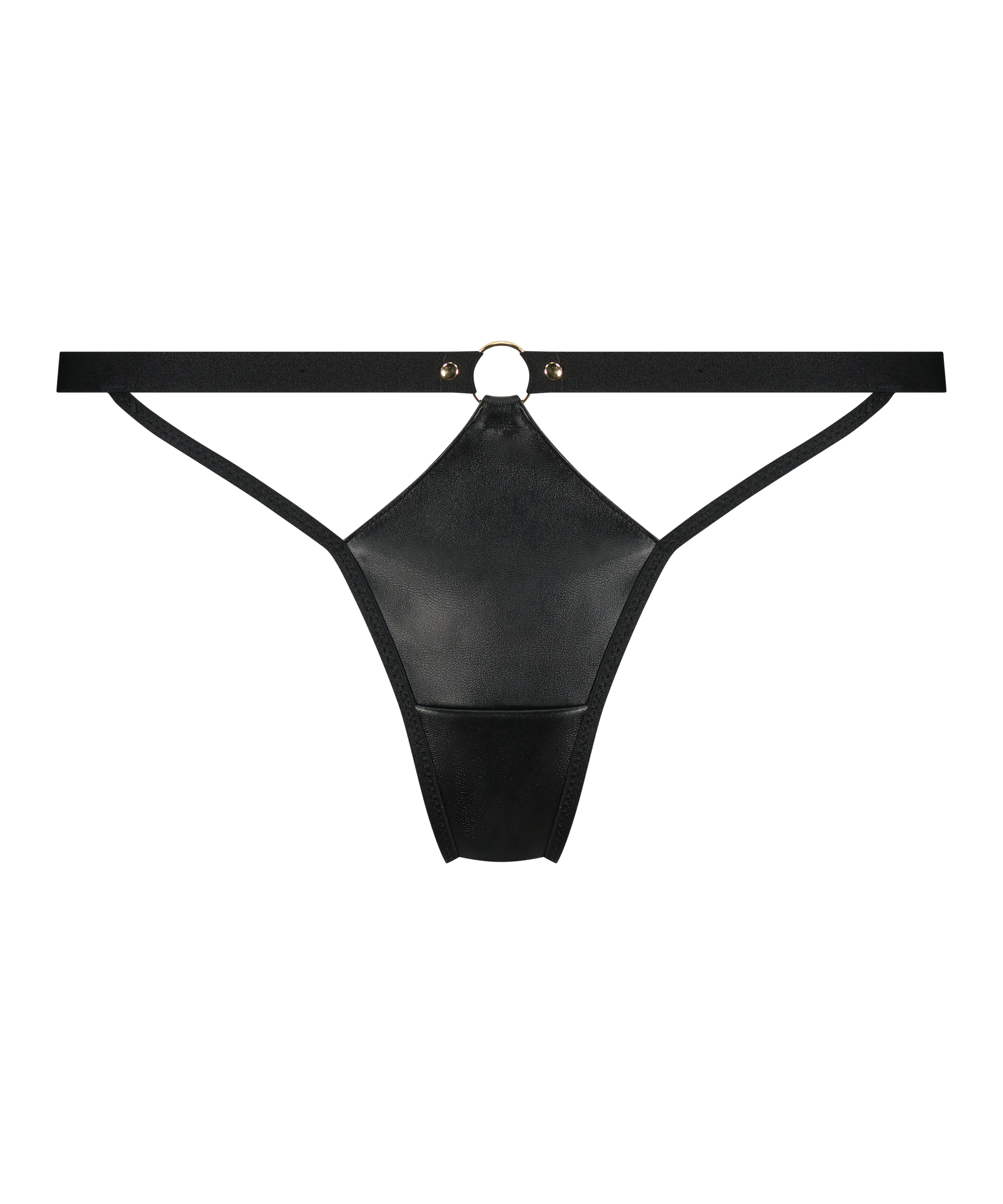 Feel sexy in this thong! The thong has lots of strings and fake leather details to make it extra special. Combine with the matching bra for a beautiful set! Part of the Private Collection.