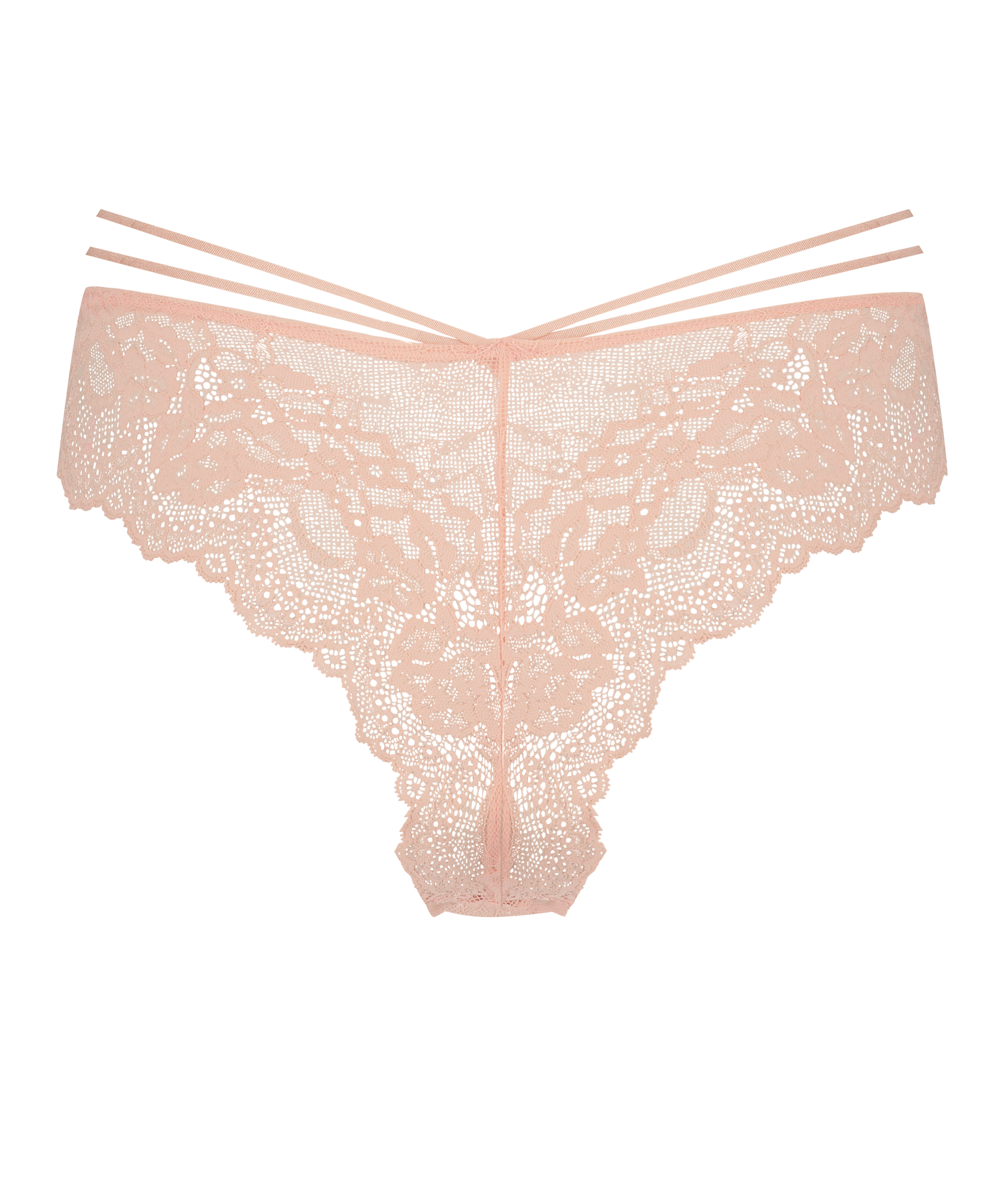 Fall in love with this brazilian! With lots of romantic lace to give a semi-transparent look, along sexy strappy details on the hips. Find a matching bra to complete the set!