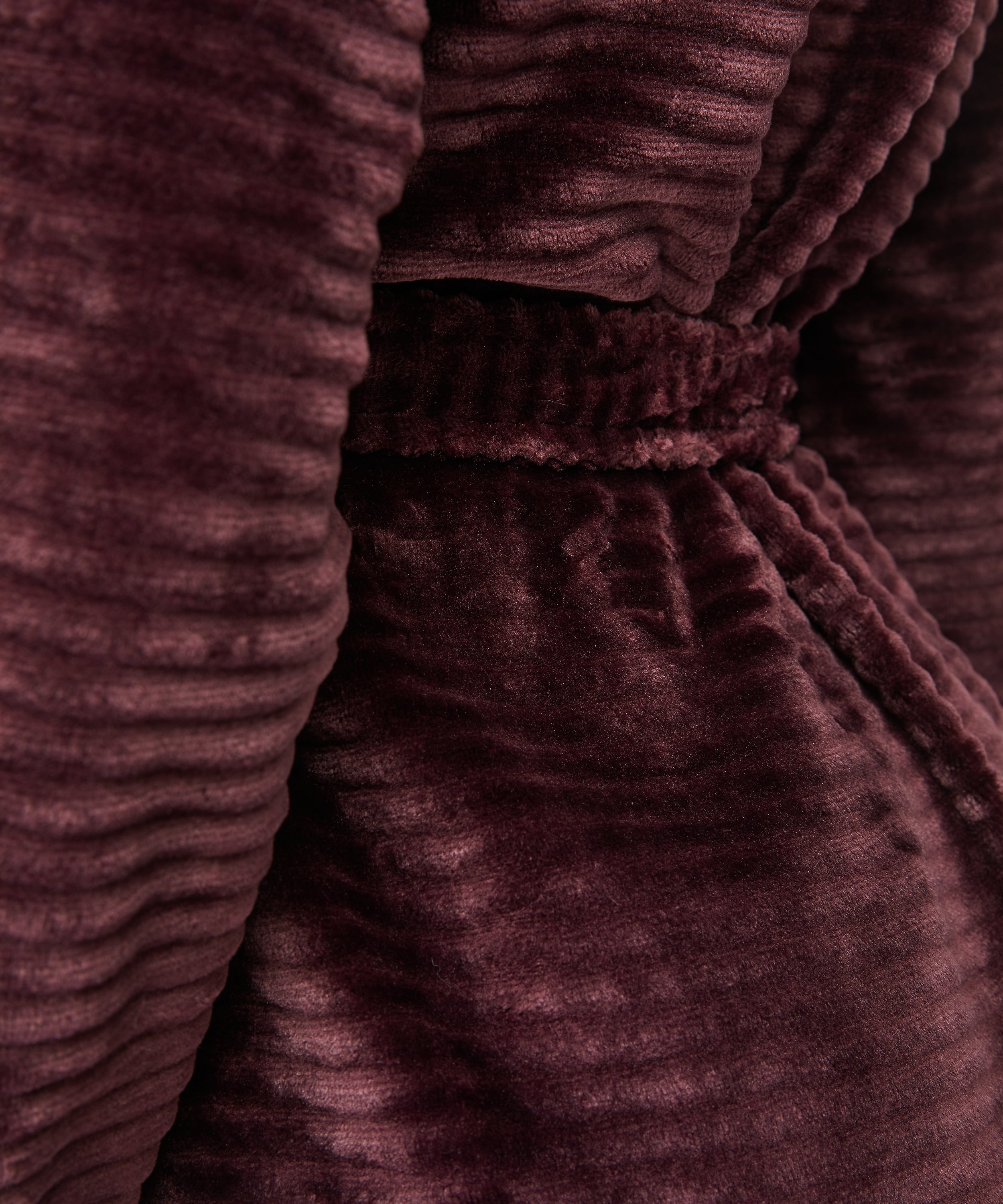 Feel comfortable in this bathrobe! The bathrobe is made of a ribbed fleece material, making it incredibly soft to the touch. Combine with a nightwear set for a complete look!