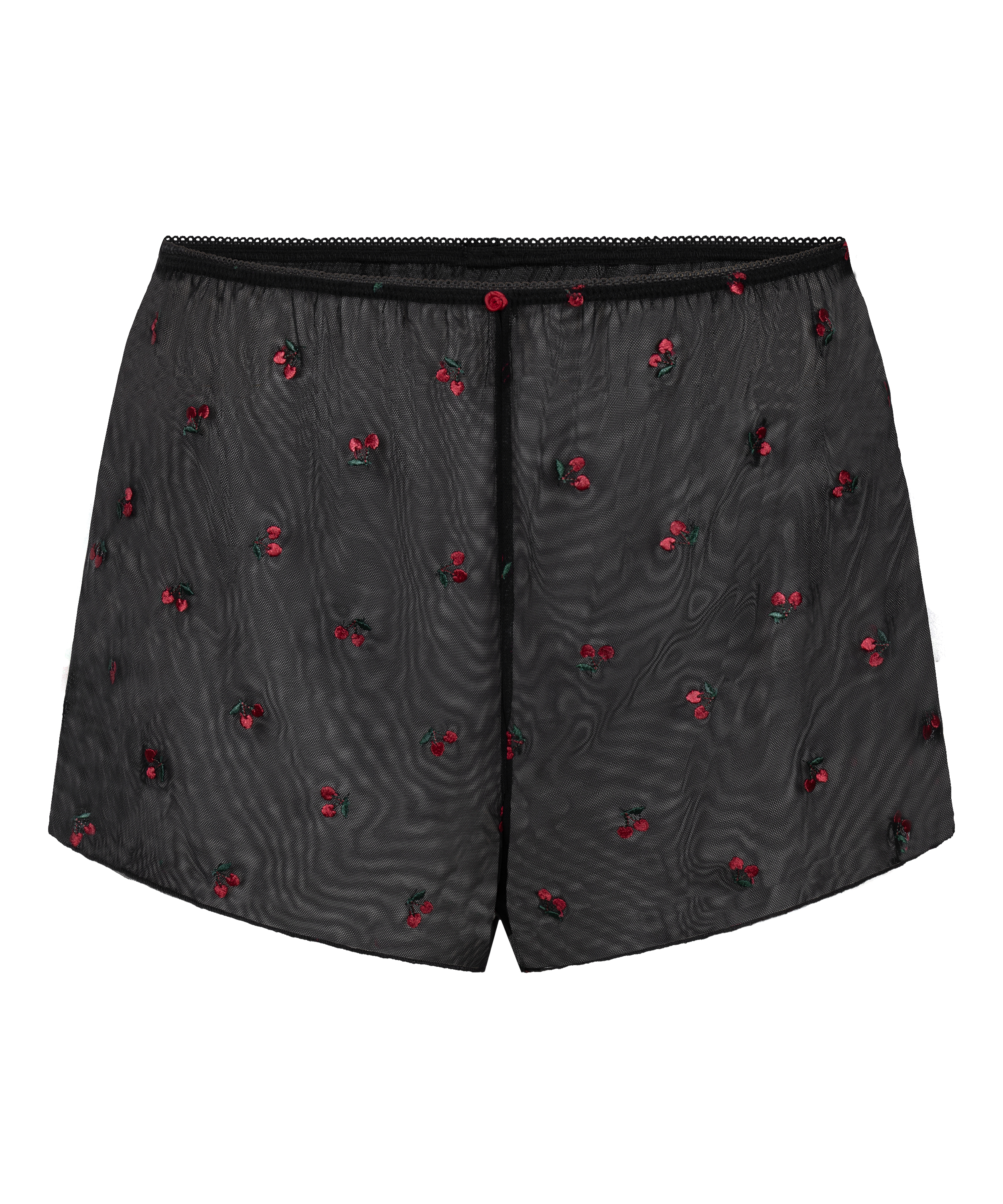 Complete your fabulous look with these mesh shorts, featuring tiny rose details for a cohesive and flirty finish. With a soft elastic waistband and lightweight feel, they’re perfect for lounging in style or adding a playful twist to your outfit. Pair with the cami or slipdress for a full mesh moment.