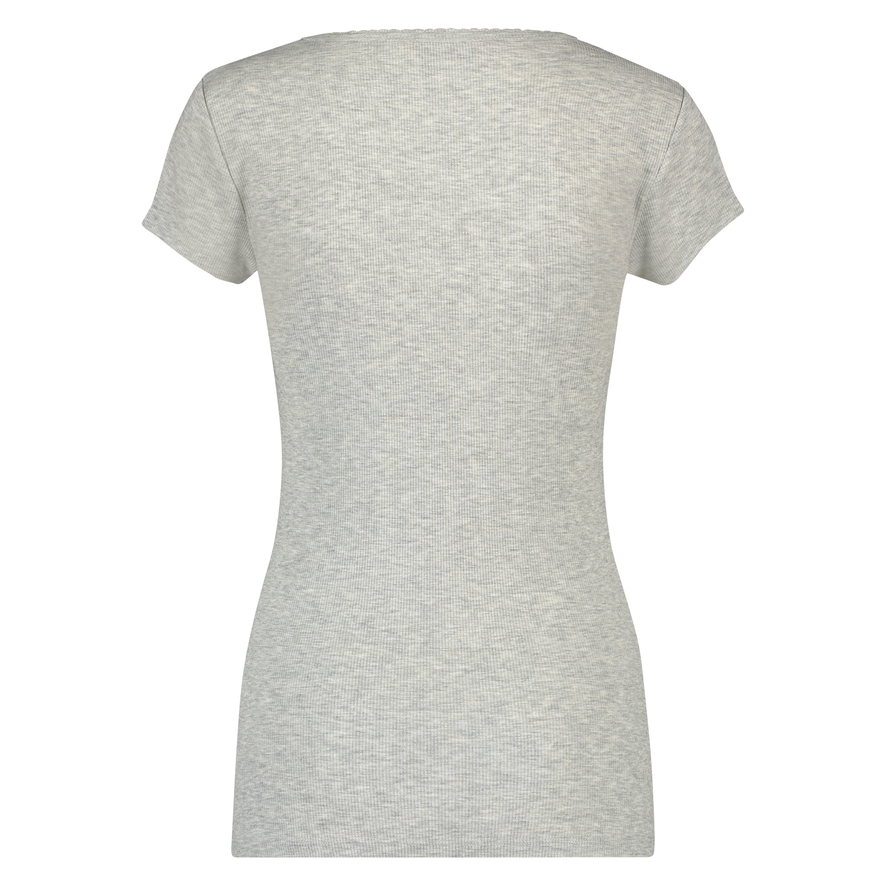 Are you looking for a lovely and comfortable top? Then this top is perfect for you! This short-sleeved top is finished in a rib motif. The top has a v-neck which is finished with piping.