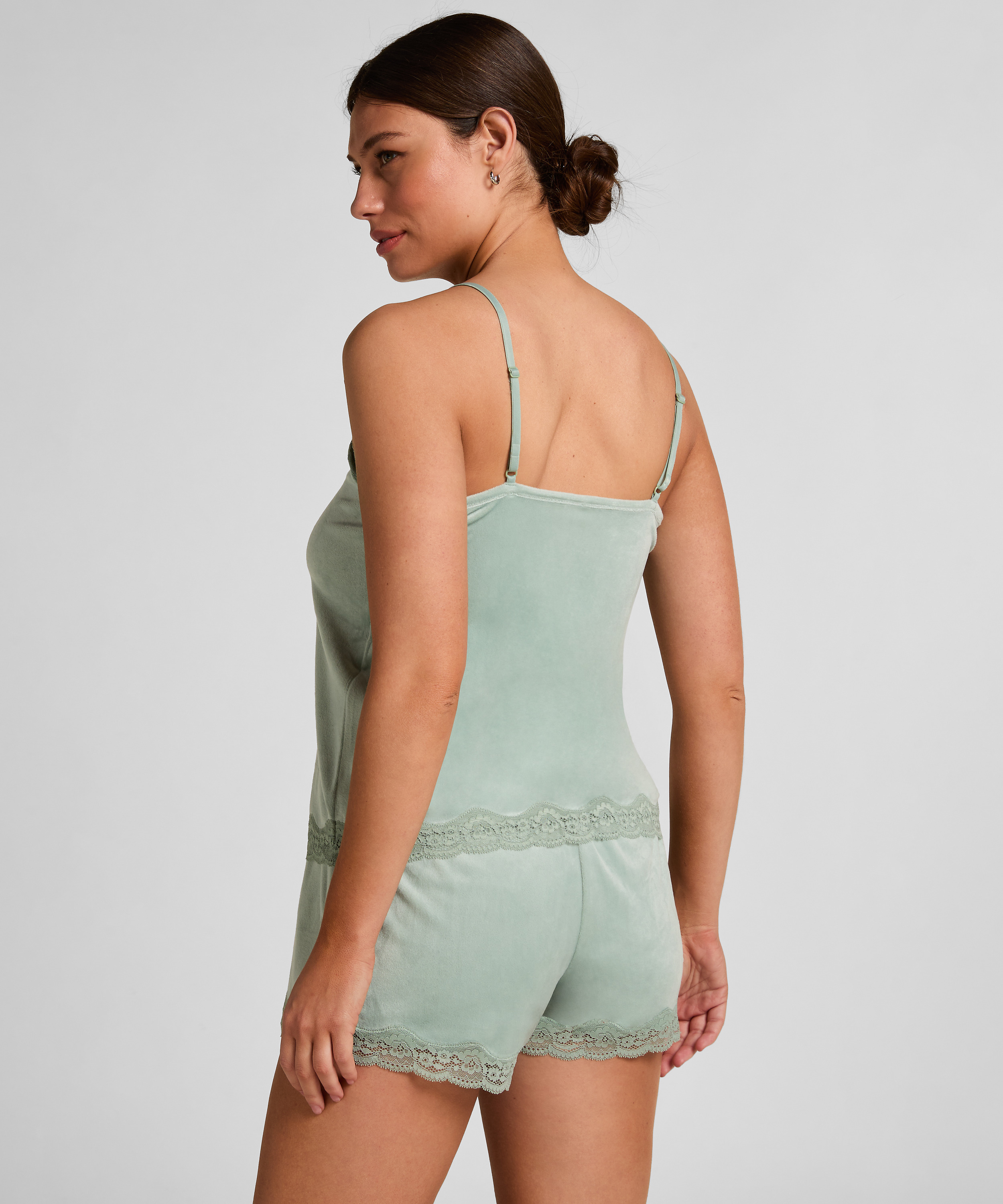 Indulge in comfort with our velours short, perfect for lounging in style. Made from soft, velour fabric, these shorts feel as good as they look. The delicate lace accents add a touch of elegance and femininity, elevating this cozy essential. Designed with a strechy waistband, they provide a comfortable, flexible fit that moves with you.