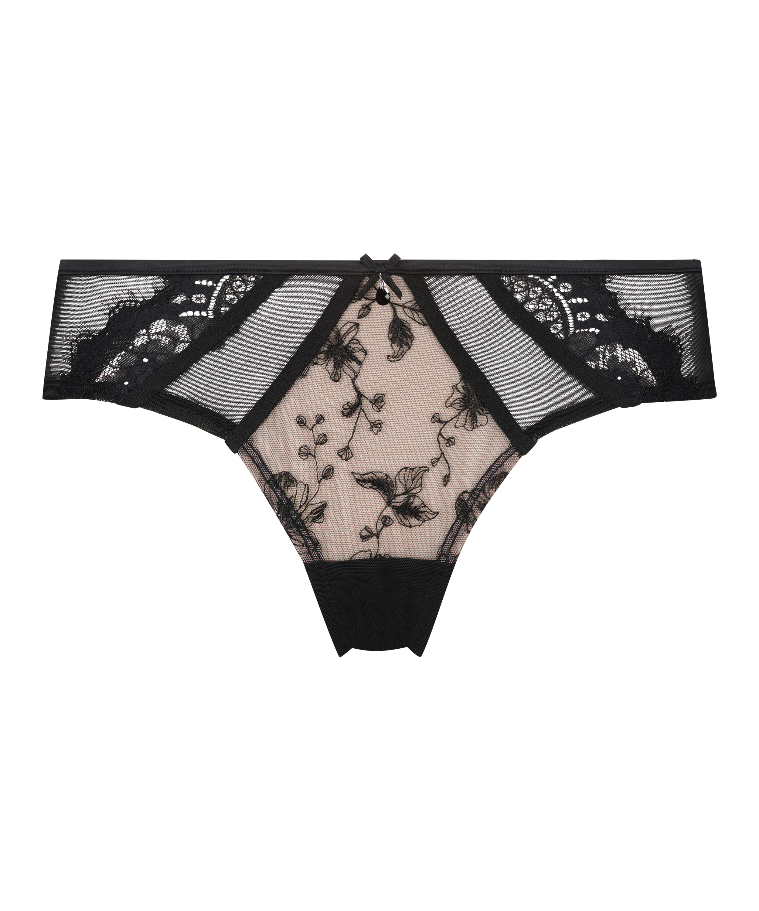 Linger in this luxuriously delicate brief made of superfine embroidered mesh! Floral-inspired designs swirl along the front and back, adding movement and flattering definition. A central panel of plain mesh in the back accentuates your curves, while the slim waistband adds a touch of allure, drawing attention to your hip bones. Wear with the matching Sia bra for a stunning complete look.