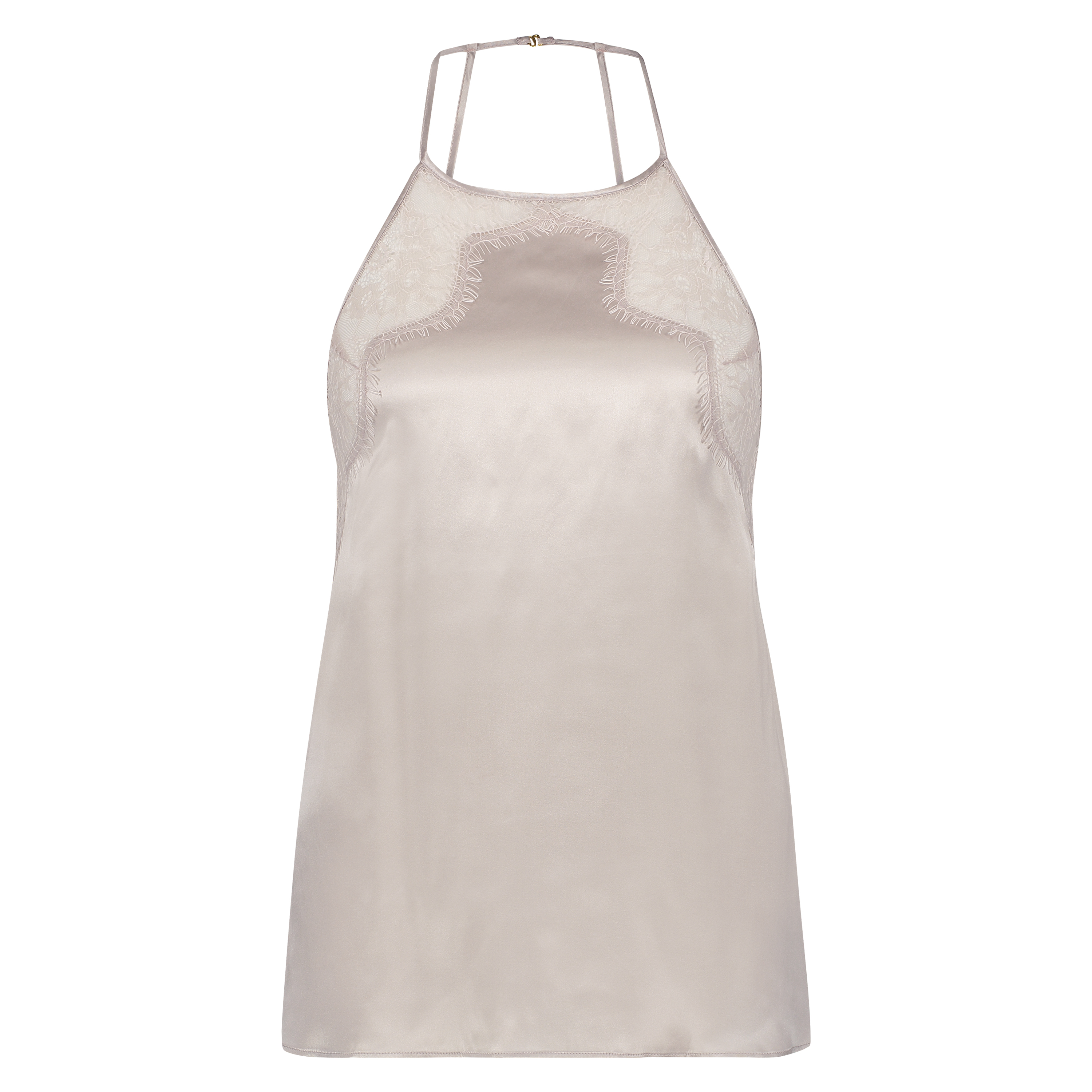 Stunning, super swish cami top from our Noir Collection. The top has a halter-neck and a gorgeous lace trim. Combine with matching items.
