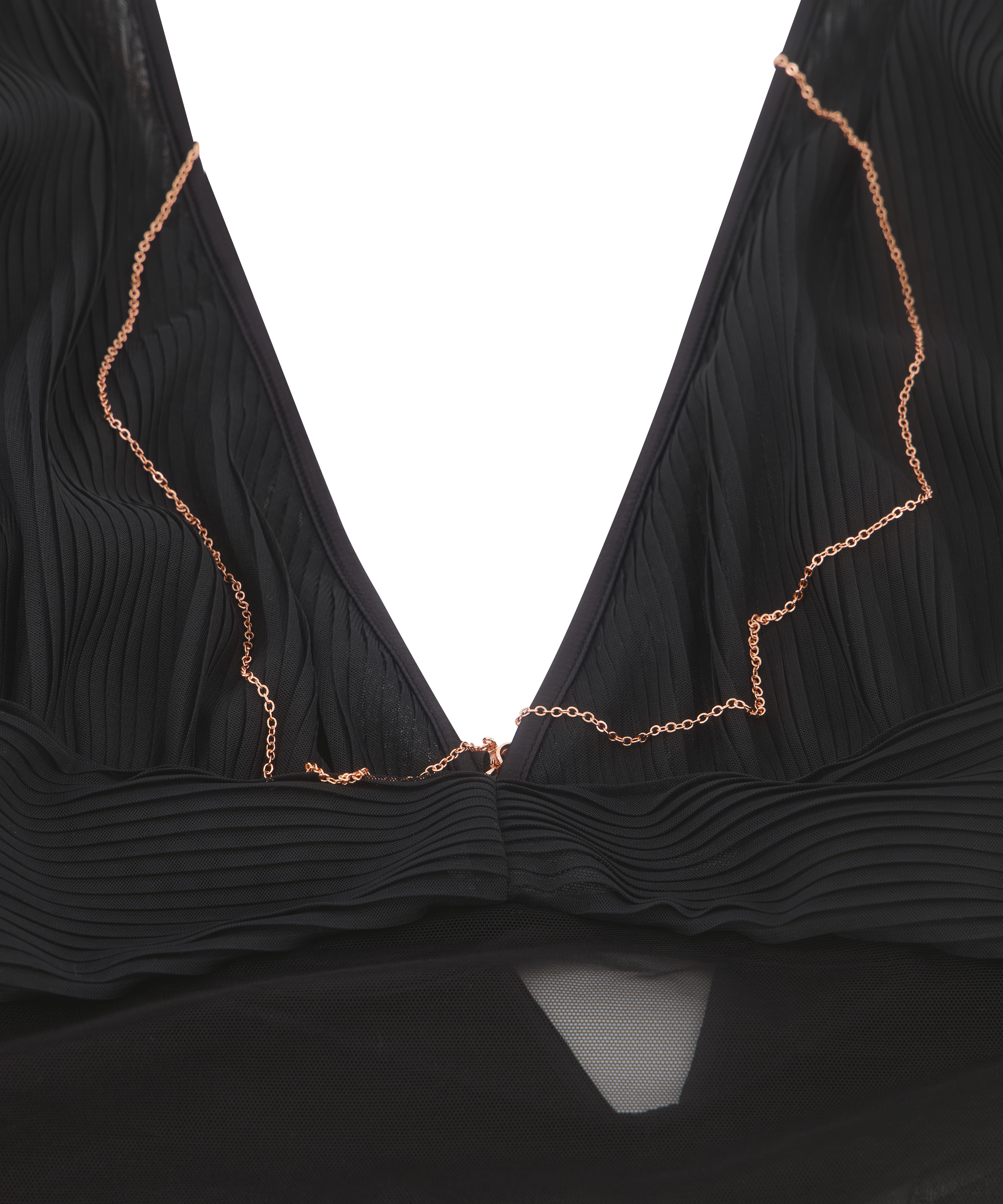 Indulge in sensual elegance with our Simona body! Featuring a perfect plunge design adorned with a removable chain, this piece exudes sophistication and allure. The deep V-back and convenient closure clip add an extra touch of glamour. Elevate your lingerie collection with this seductive and luxurious body.