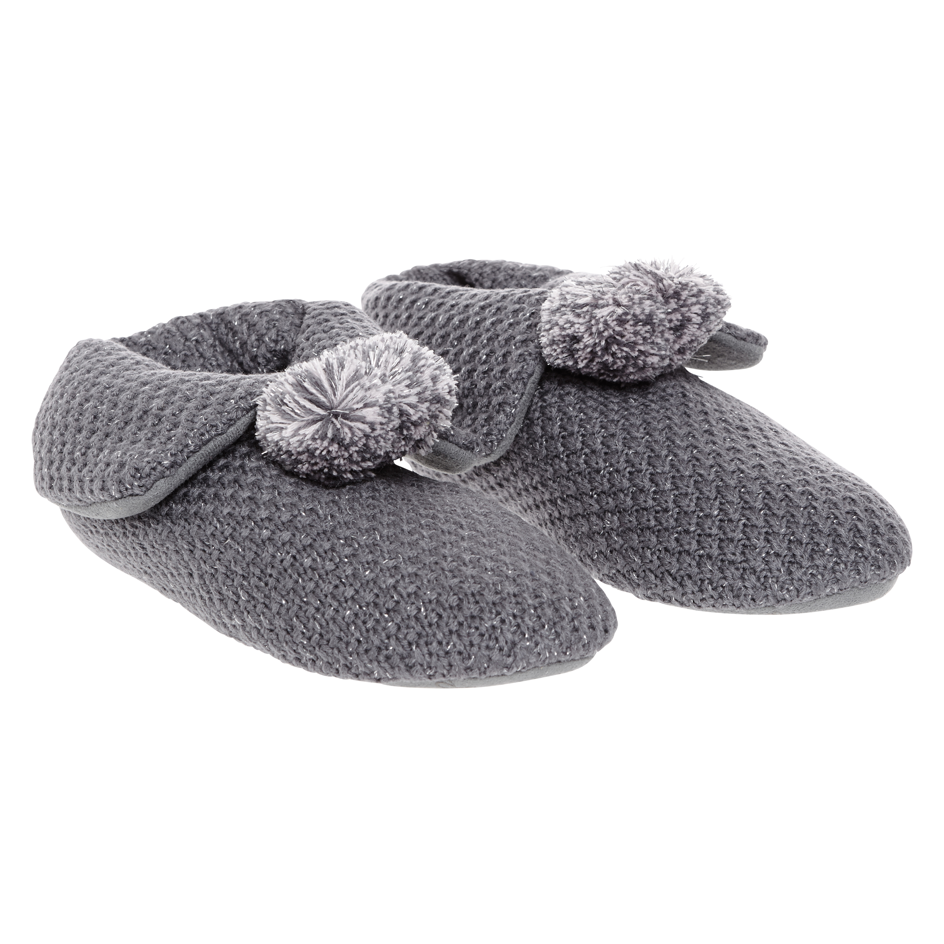 Treat your feet to these lovely soft and comfortable grey slippers with a pretty pompom on the front.