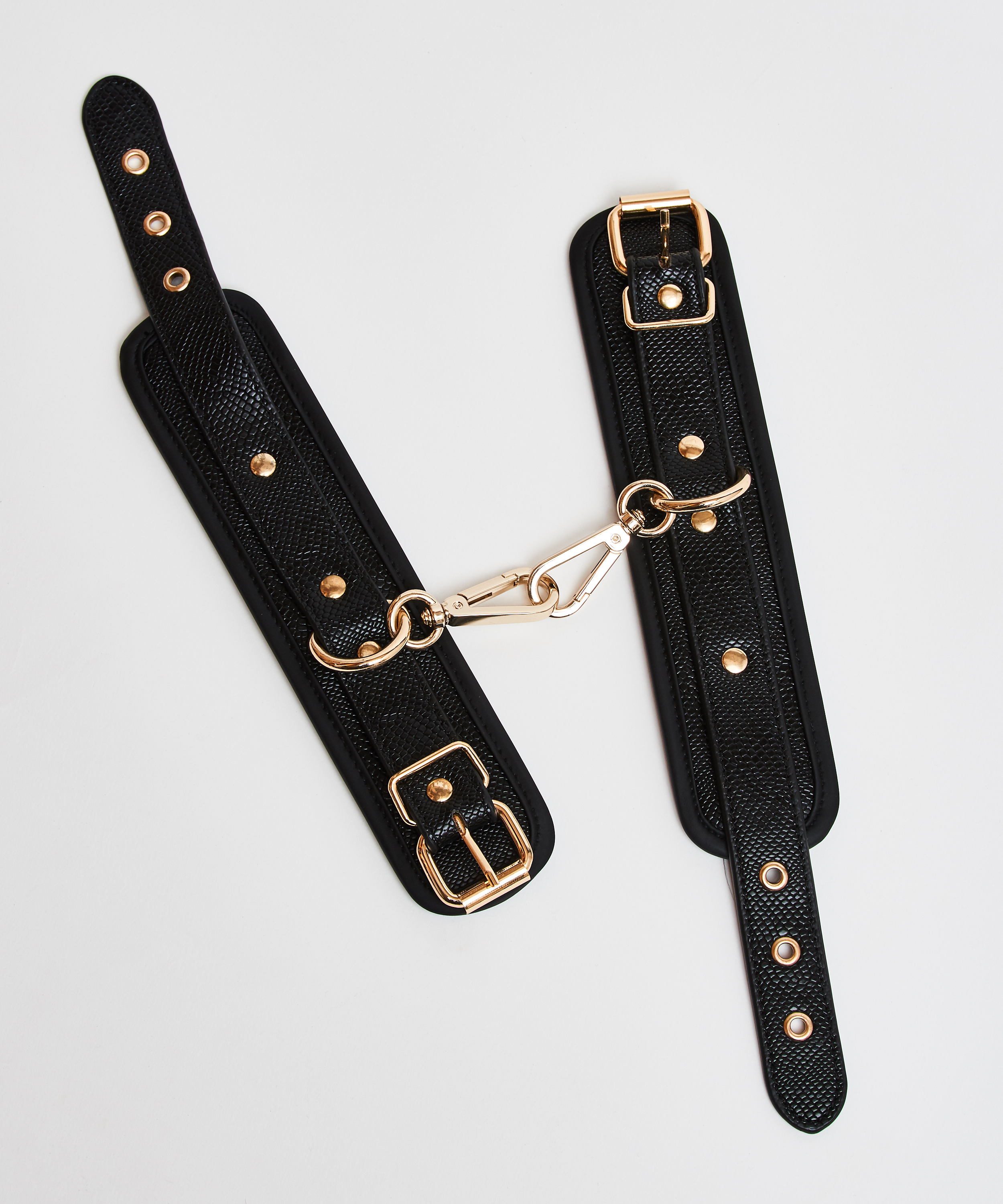 Make your evening extra exciting with these handcuffs! The handcuffs have fake leather details with a snake print and can be attached with gold fastenings. Combine with matching items from the Private collection for a sexy look!