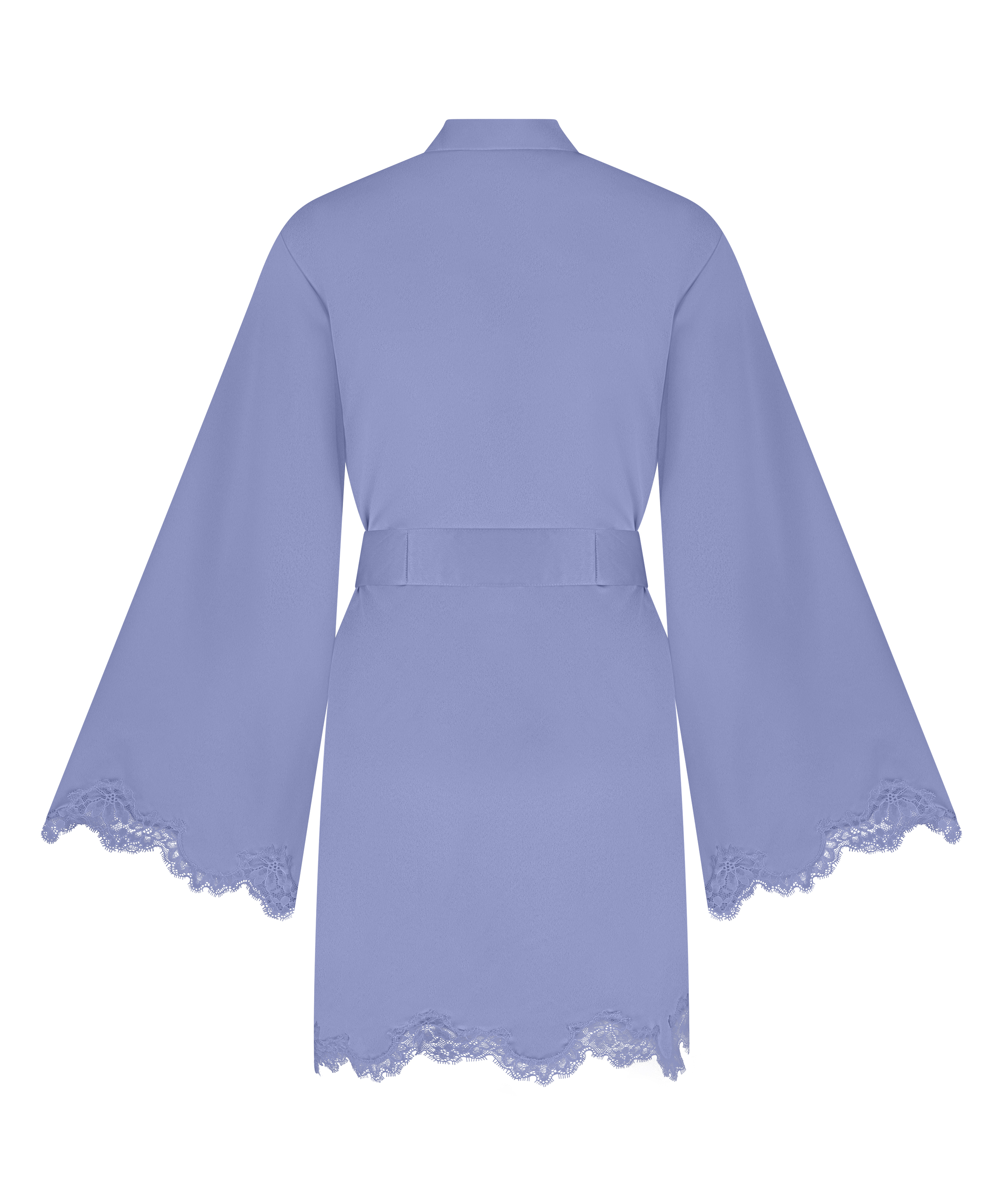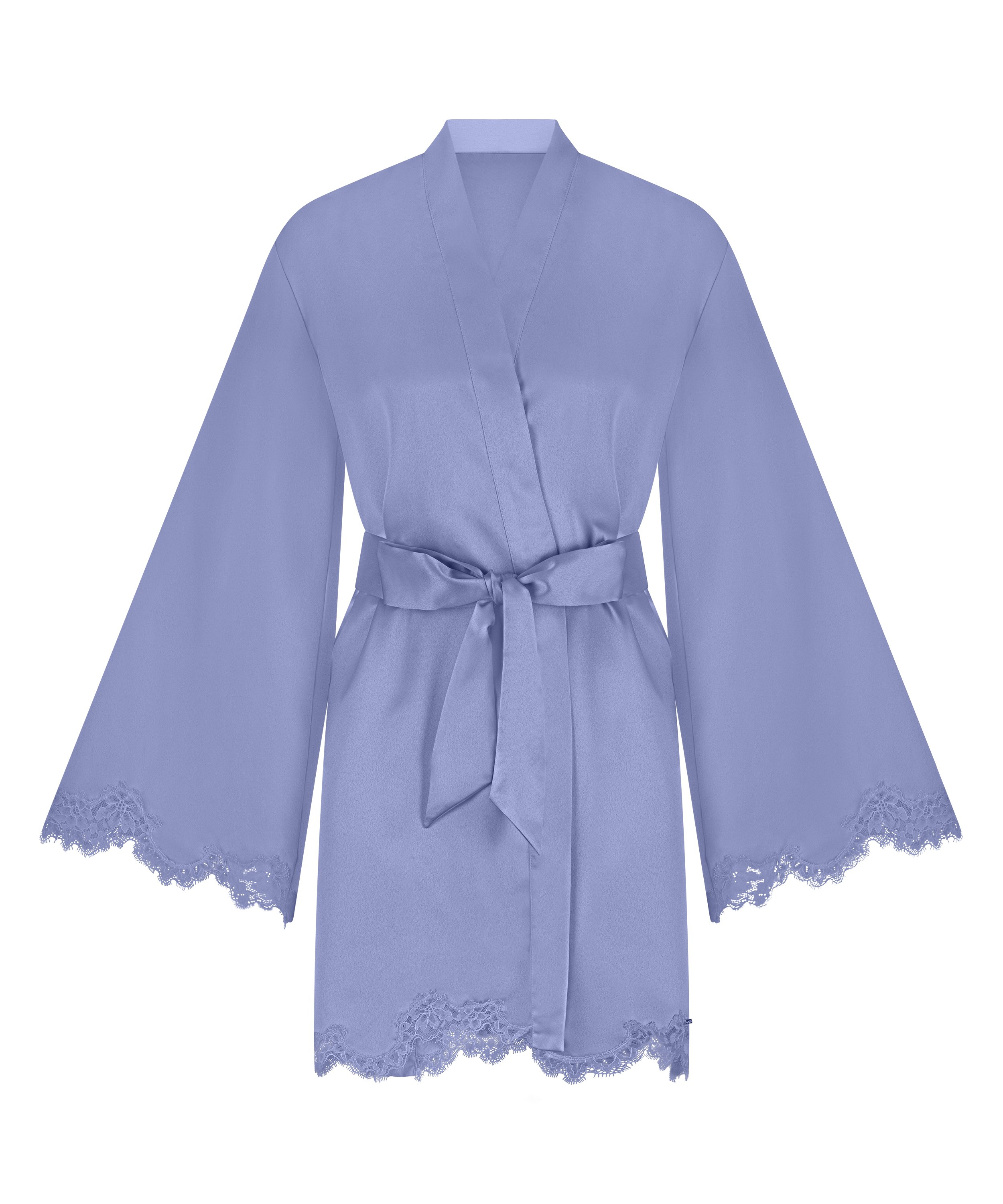 Don't miss this elegant kimono! With lots of romantic lace and a real tie closure. This adorable kimono has wide sleeves and is made of satin material what gives it a luxurious look. Combine with matching items. Part of our Noir collection.